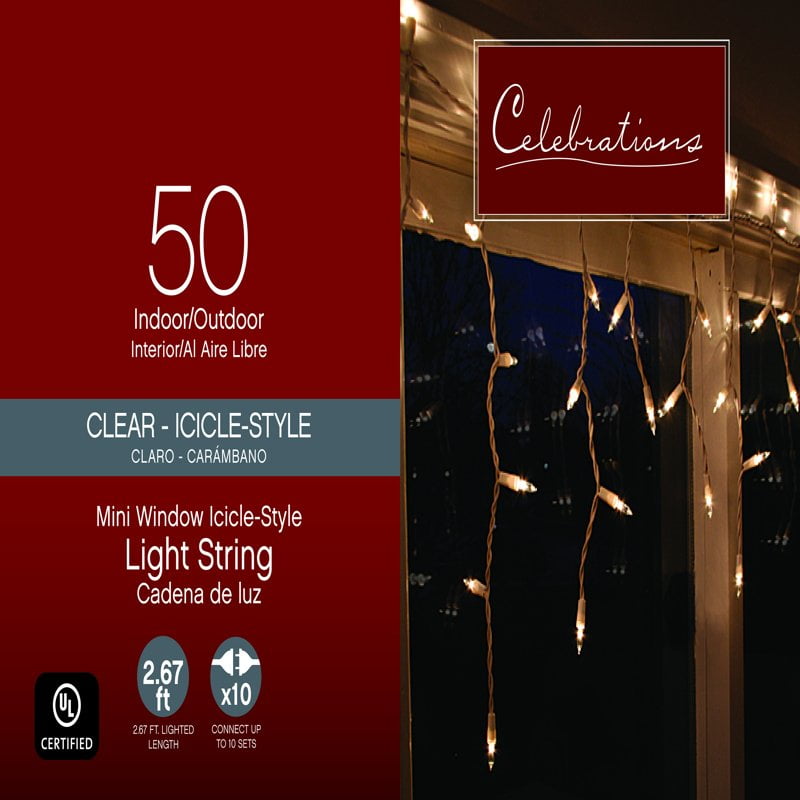 Celebrations 14098-73A Window Icicle Set, 3′, 50 Lights, Bulb Color: Clear – 2 Pack