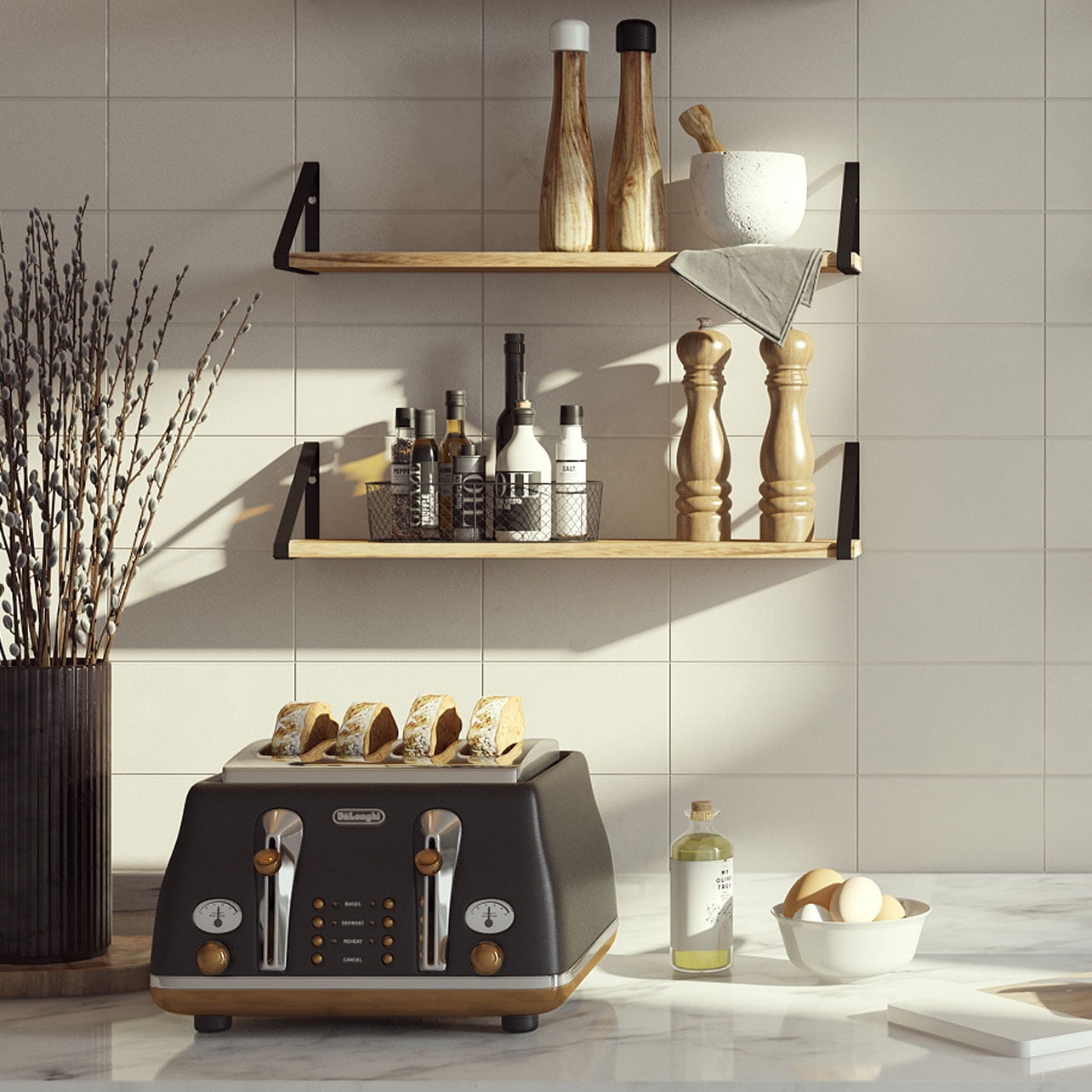 Wallniture Ponza 24′ Wall Shelf Rustic Bedroom Decor Set of 2 Floating Shelves, Wood, Natural Burned