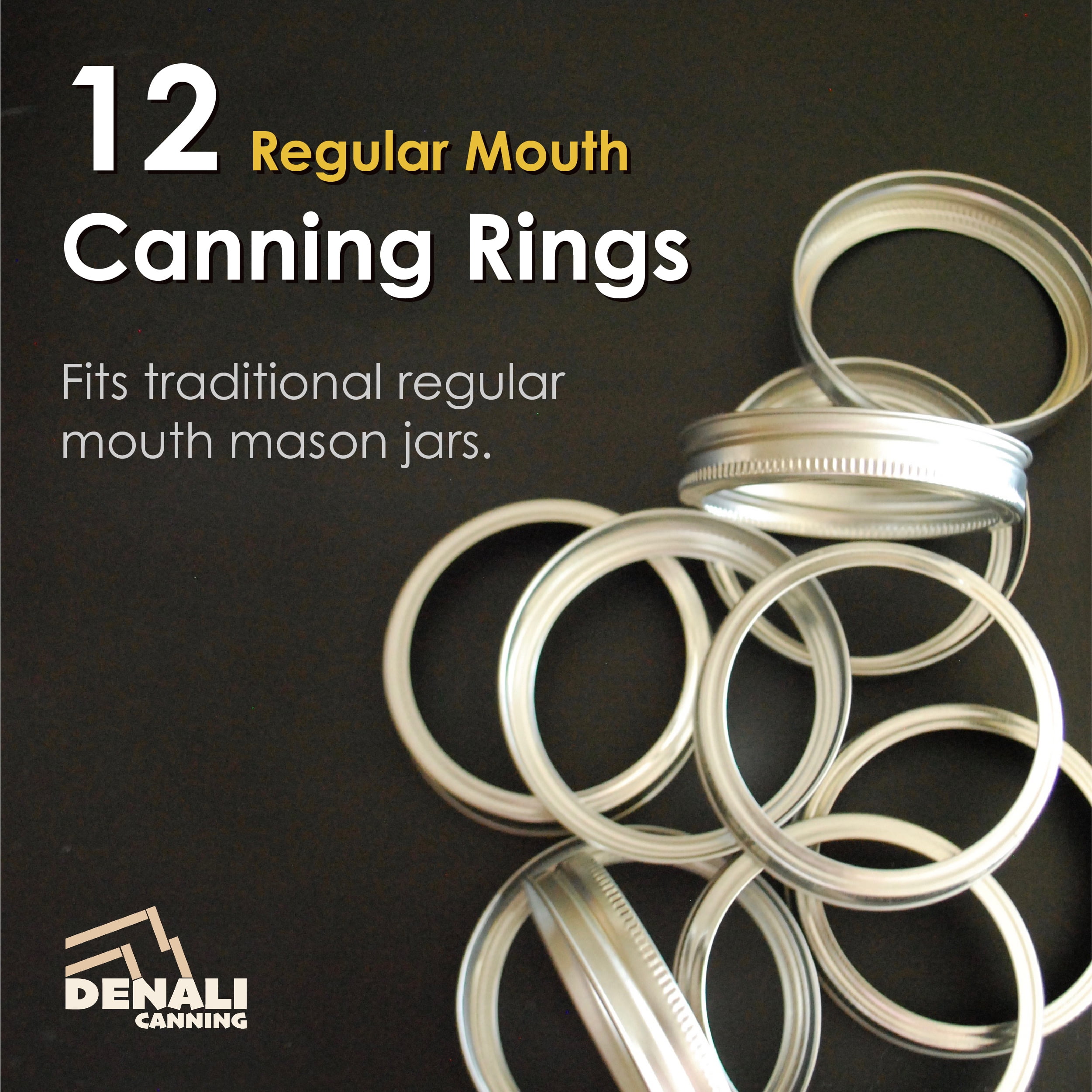 Denali Regular Mouth Canning Rings | 12-Pack | Forged Steel Bands | Fits Traditional Mason Jars, Ball or Kerr | Denali is a USA Company