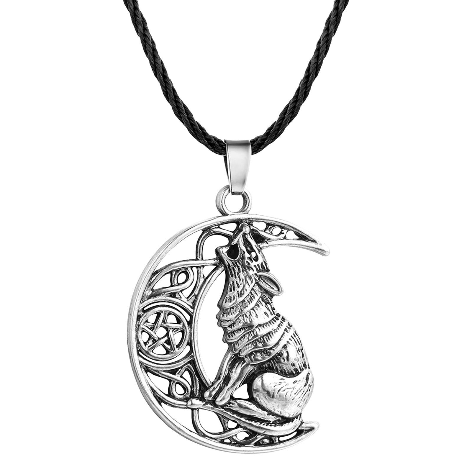BuleStore Personality Wolf Necklace On The Moon Shows Temperament Suitable For Men And Women