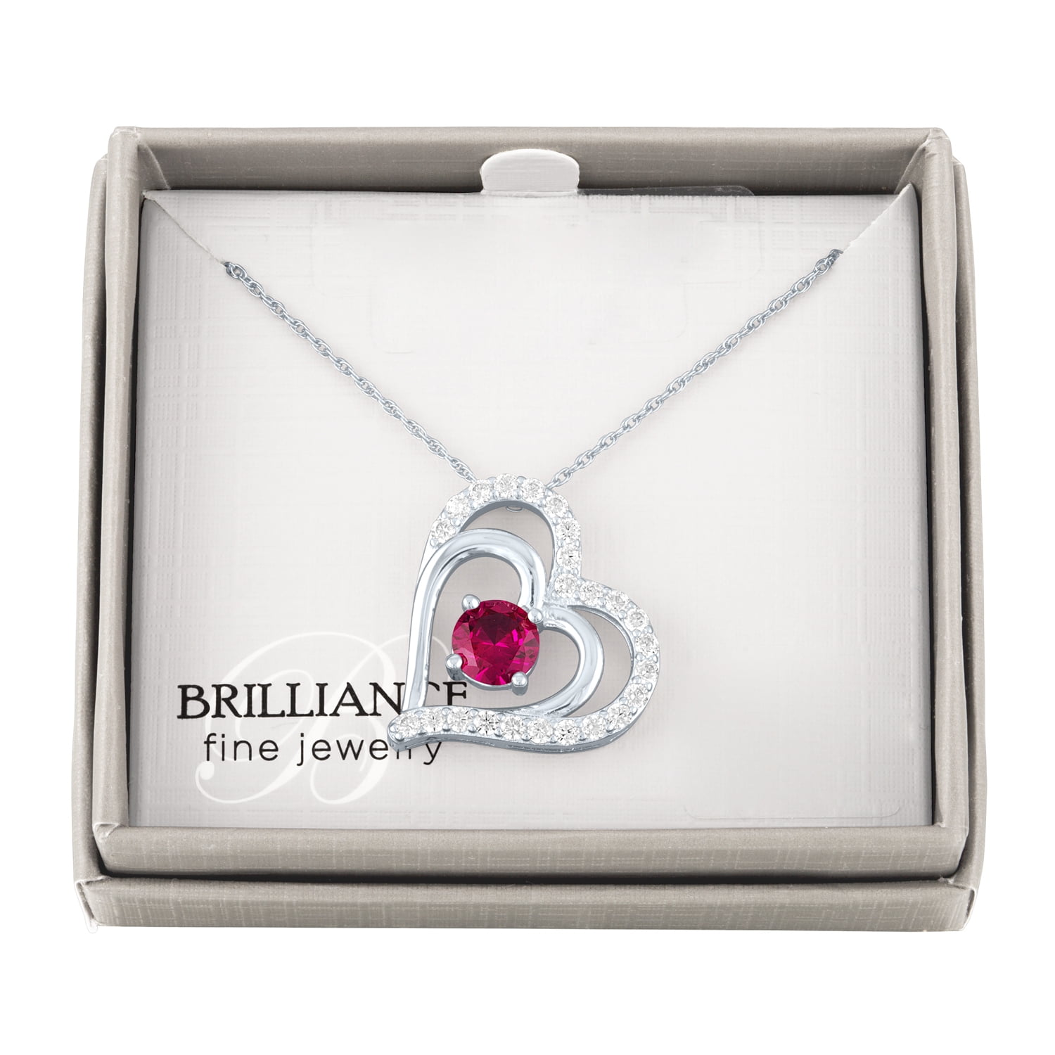 Brilliance Simulated Ruby and CZ Sterling Silver Heart Pendant, 18′