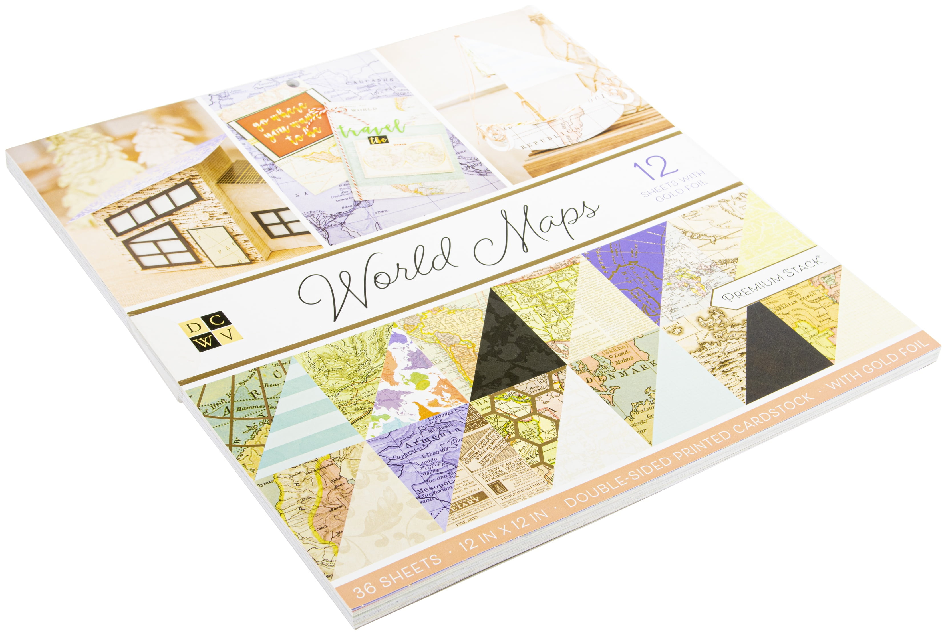 DCWV Double-Sided Cardstock Stack 12’X12′ 36/Pkg-World Maps W/Foil Accents
