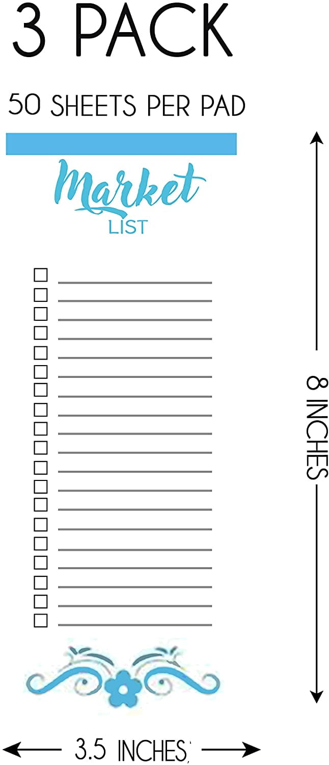 Market List Magnetic Notepad For Memos, Shopping List, To Do Lists, 50 Sheets Per Pad, 8.5 inch x 3.5 inch. (3 Pack)