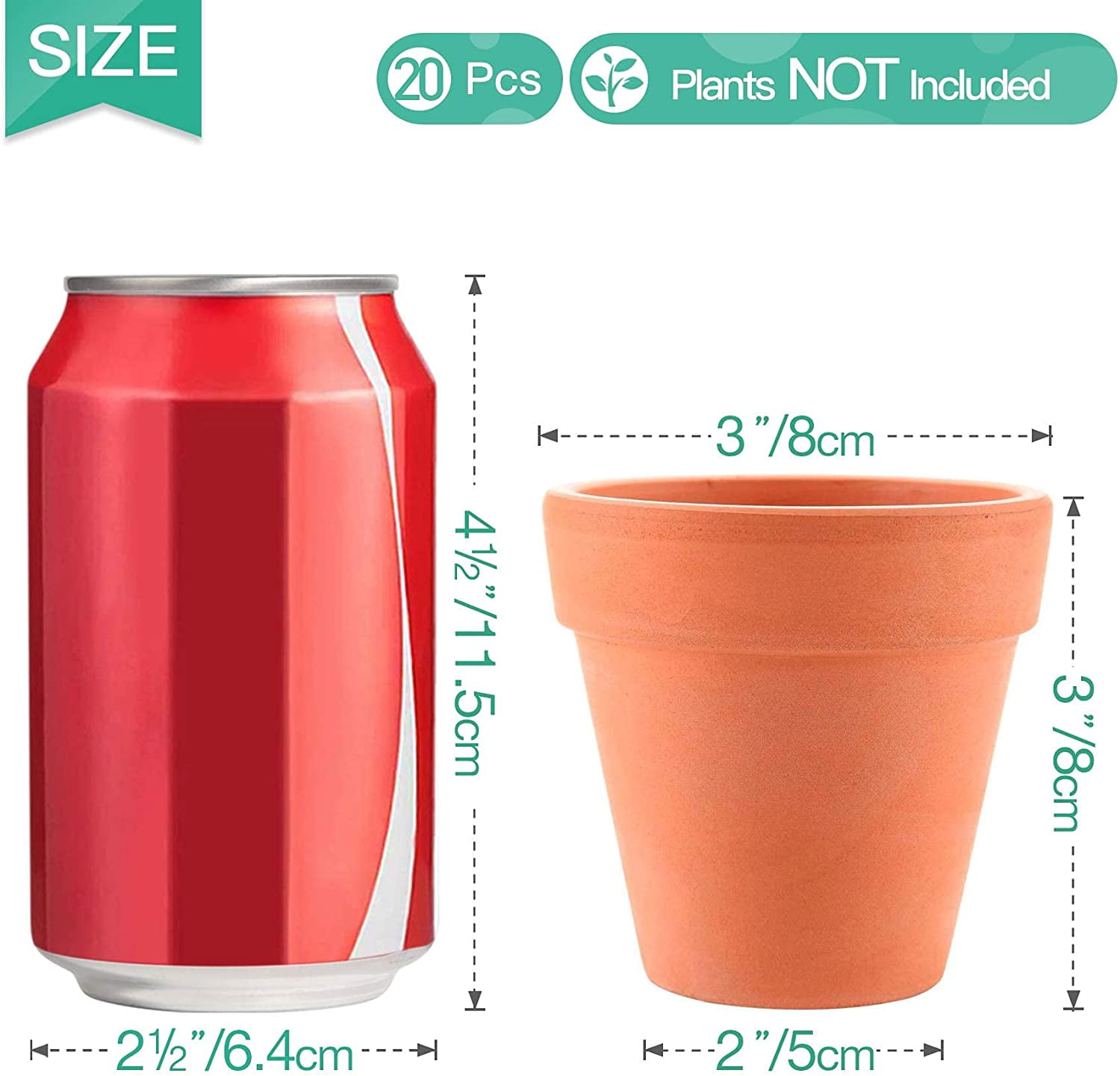 T4U 3 inches Terracotta Classic Pots with Drainage Holes for Succulents and Cactus, Set of 20
