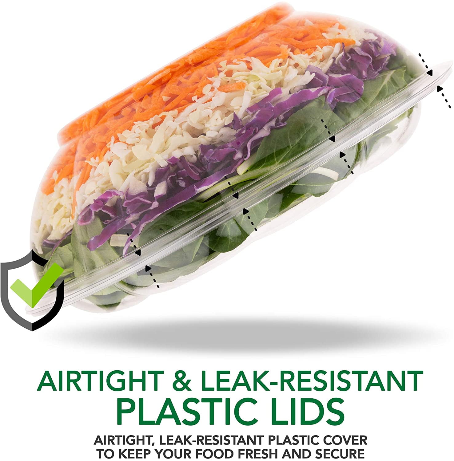 - AIRTIGHT & LEAK-RESISTANT PLASTIC LIDS: These plastic salad bowls are strong and lightweight, with an airtight, leak-resistant plastic cover to keep your food fresh and secure.