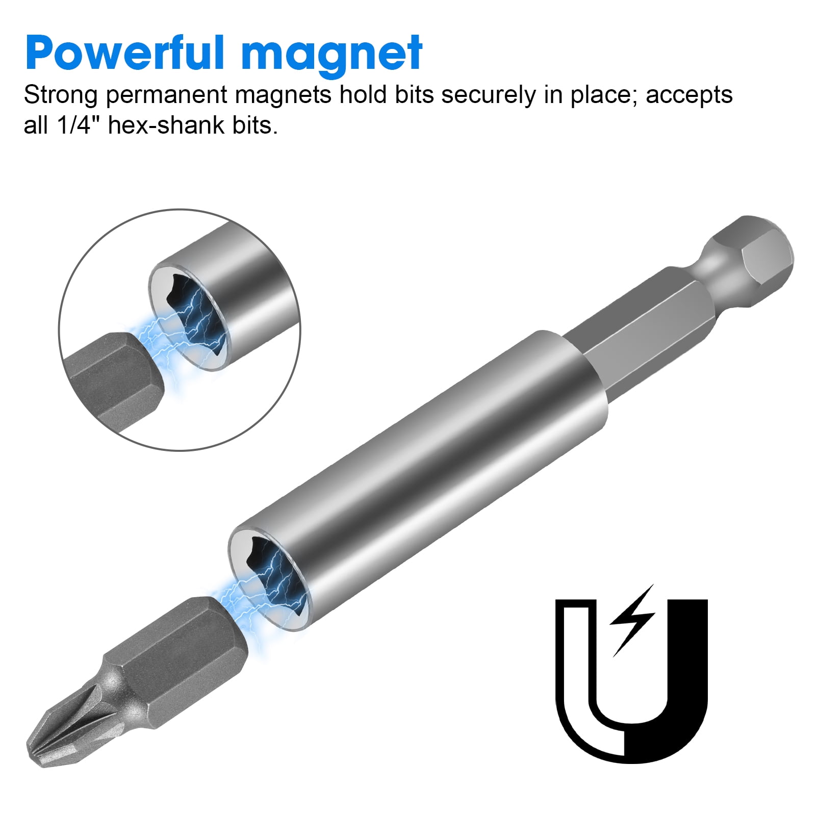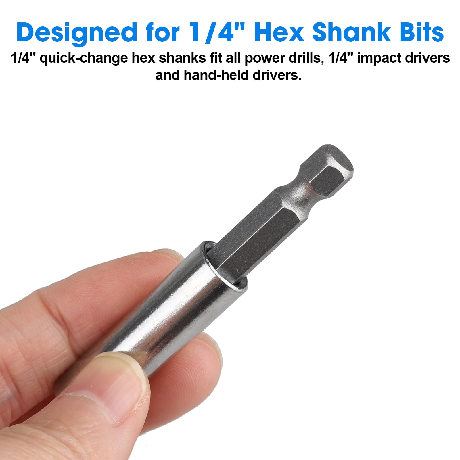 EEEkit Magnetic bit extension holders are a must-have accessory for power drills and impact drivers. Their extensions are in lengths of 2.28inch (58mm) for superior access for hard-to-reach fasteners. These strong permanent magnets hold bits securely in place and accept all 1/4inch hex shank bits. The 1/4inch quick-change hex shanks fit all power drills, 1/4inch impact drivers, and hand-held drivers. These Magnetic Screwdriver Extension Socket Drill Bit Holders are designed for 1/4" hex shank bits, they are great for working with hard-to-reach screws, and can be used in automotive, hardware, hobby, home, etc. Besides, these magnetic plug-in drill holders are equipped with connecting rods, magnetic connecting rods are simple to operate, and are very easy to use.