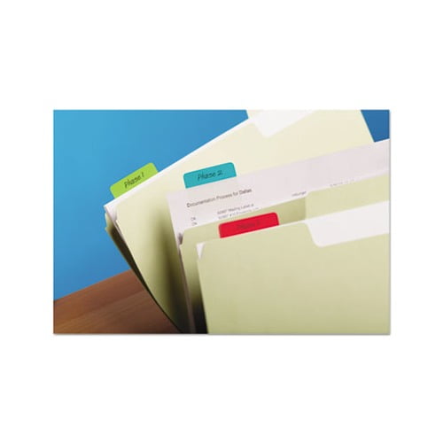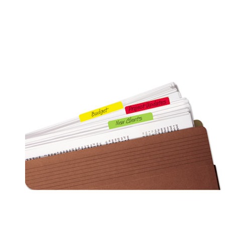 Here’s a simple way to get files organized, labeled and color-coded in one easy package. Secure, striped, self-stick tabs offer quick and easy tabbing and indexing. Easy to write on and simple to remove, replace or reposition. Use them to label file folders, expanding files and project files. Great for flagging pages in notebooks, books and catalogs. Packaged in a pop-up dispenser. 2" Solid Color. File Insert/Tab Type: All-Purpose Tabs Tab Cut: 1/5-Cut Colors: Assorted Color Family: Multicolor.