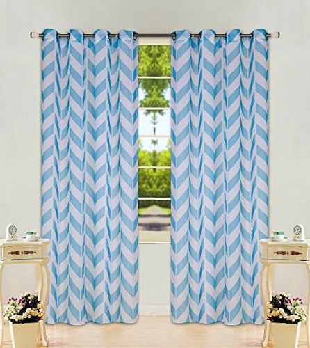 2 Panel Chevron Turquoise Two-Tone Pattern Design Voile Sheer Window Curtain 8 Silver Grommets 55′ W X 108′
