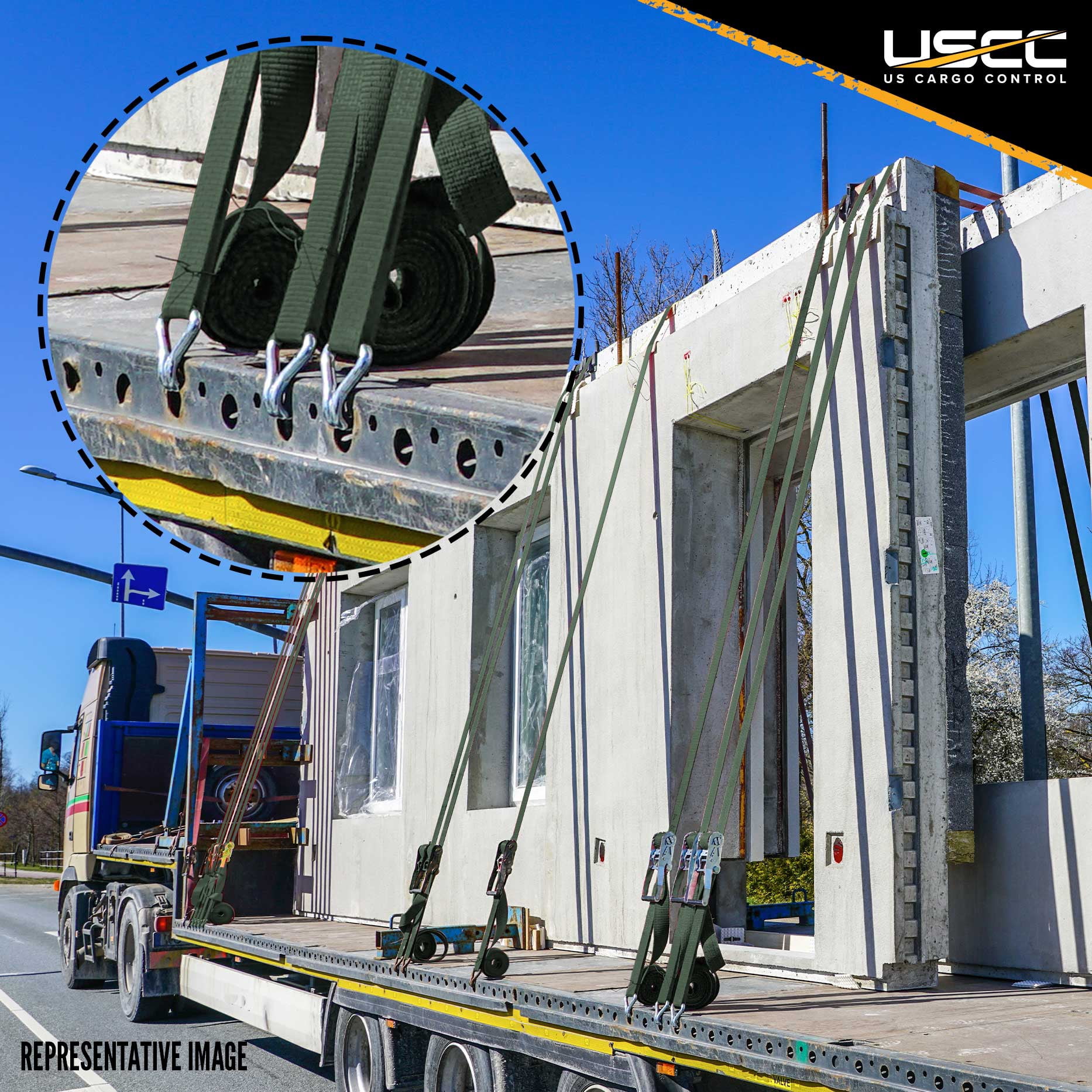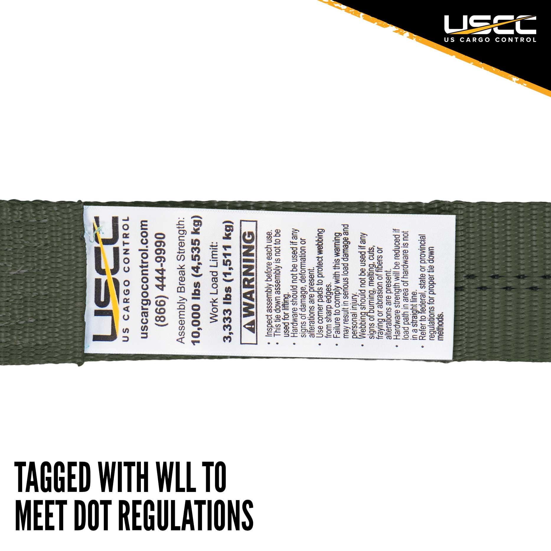 This 2 x 27 ratchet strap is great for holding loads in place on trucks, pickups, trailers, rail cars, semis, and other freight carriers. The olive industrial grade polyester webbing is 27 feet long and will not stretch over time or loosen with road vibrations. The durable polyester makes this cargo strap highly resistant to weathering, abrasion, corrosion, and other damage. This tiedown strap is fitted with double wire J-hook end fittings, which are shorter than S-hooks yet stronger, due to the double wire. This gives the hooks the ability to easily hook into different types of anchor points to quickly secure your cargo. The wire hooks and the ratchet are finished with zinc plating to give you extra protection. This ratchet strap gives you a 3,333 pound working load limit to help you with tough jobs. All of our ratchet straps meet or exceed DOT and WSTDA guidelines, and are labeled with working load limit information. If you have any questions about this 2 inch ratchet strap, you can send us a message through Amazon.2" x 27′ Olive Ratchet Strap w/ Double J Hook
