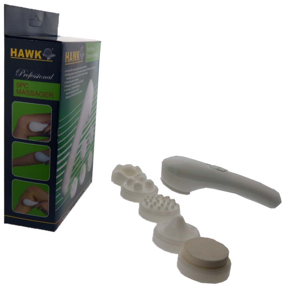 If You Have Sore, Tired, Aching Muscles, This Little Device May Be Just What You Need. This Hand-held, Battery Operated Massager Has 5 Different Attachments For Different Parts Of The Body. It Includes A Facial Sponge, Deep Muscle, All Purpose, Raised B