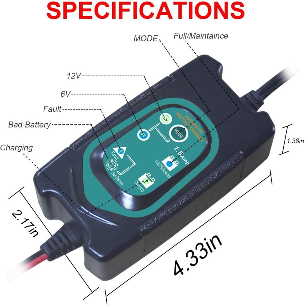 - Wide Applicability:Designed for charging 6V and 12V SLA/VRLA/GEL/AGM/WET lead acid batteries with a capacity of no more than 40AH, and can maintain lead-acid batteries up to 60AH.