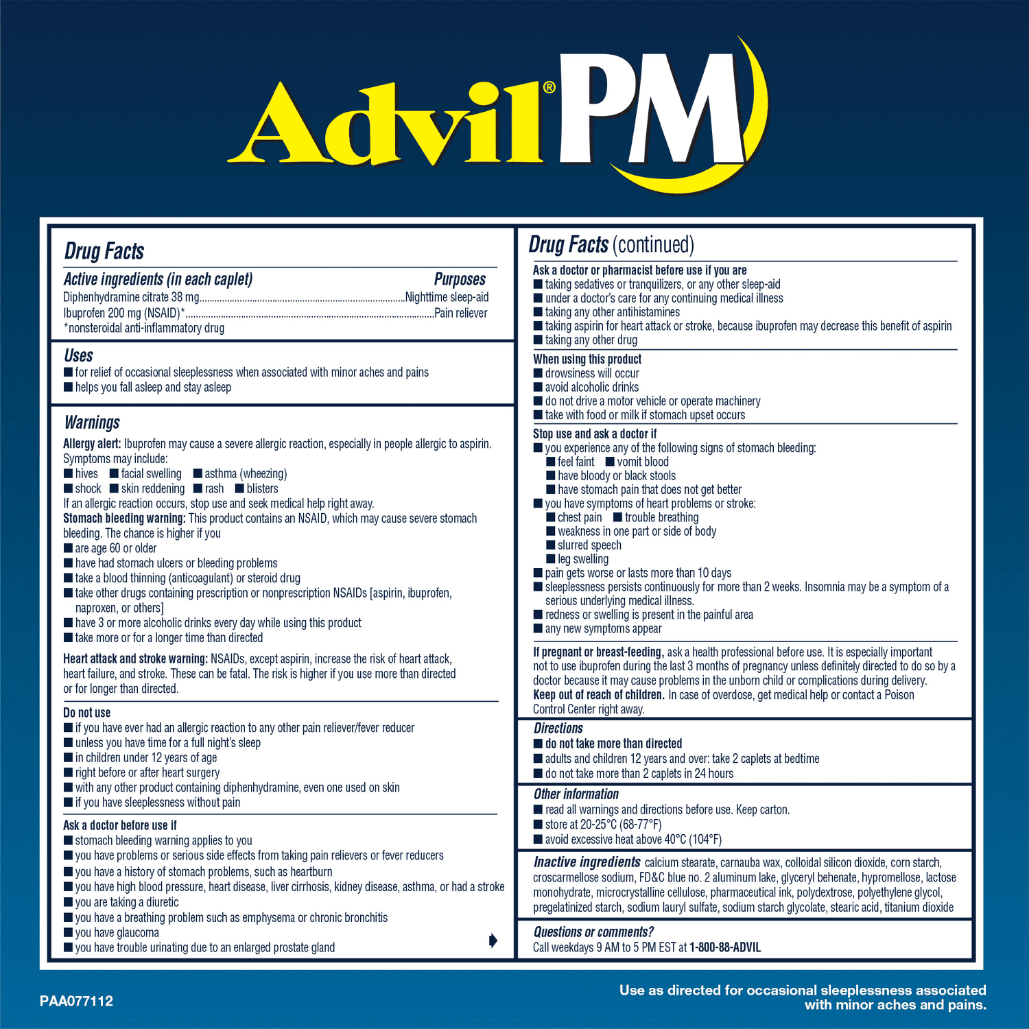 Advil PM, Pain Reliever/Nighttime Sleep Aid, 200 Caplets