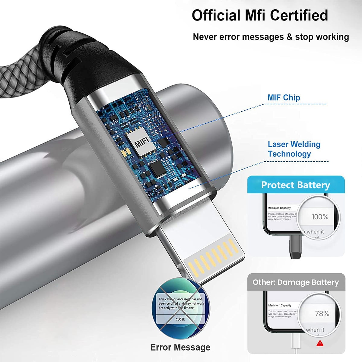 ★ Reliable Safe Charging he seamlessly welded aluminum alloy joints are not easy to fall off, say goodbye to easy broken connector.This super-fast charger for iPhone delivers quality, safety, and reliability. Quality Heavy Duty iPhone Charger