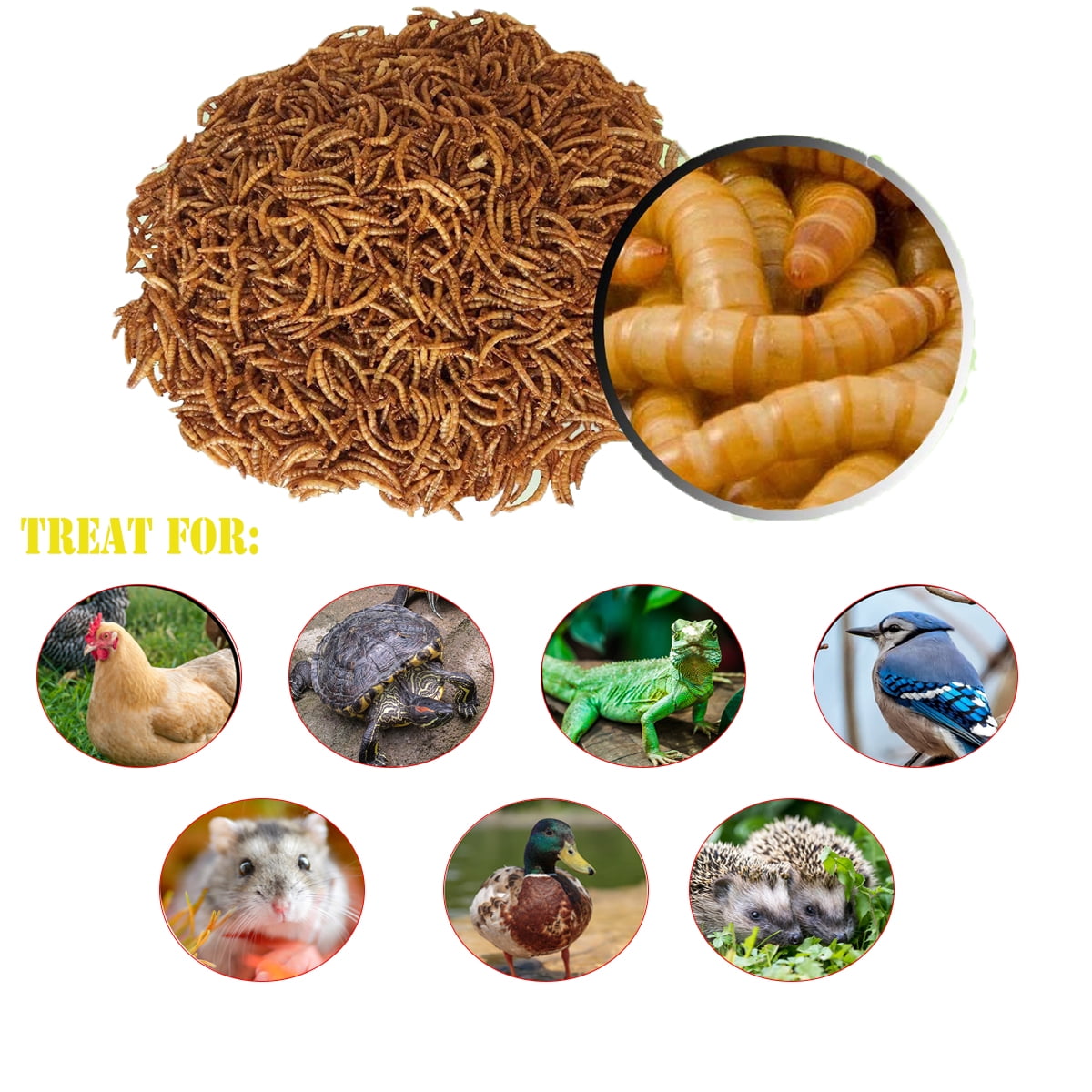 - FEEDING INSTRUCTIONS – Use alone in a feeder, simply scatter meal worms on the ground or mixed with your favorite wild bird seed. And your pets will go crazy for delicious mealworm treat.