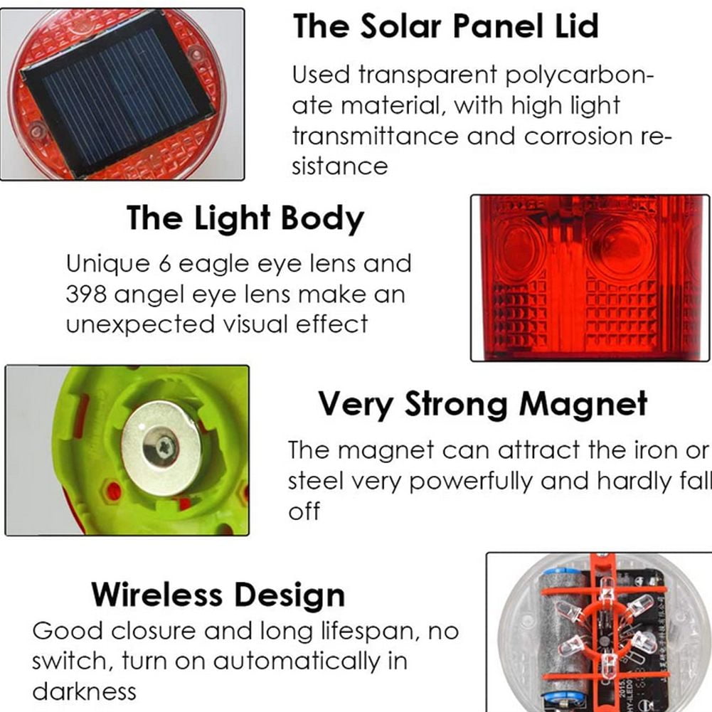NOTICE: The blue warning light has no switch, in daylight it won’t be blinking only absorb solar power into electrical energy and it flashes automatically once it sense darkness. Please place it under the sunlight and charge it for 4h or more before you use it. Unique 6 eagle eye lens and angel eye lens make the light brighter and shine farther.