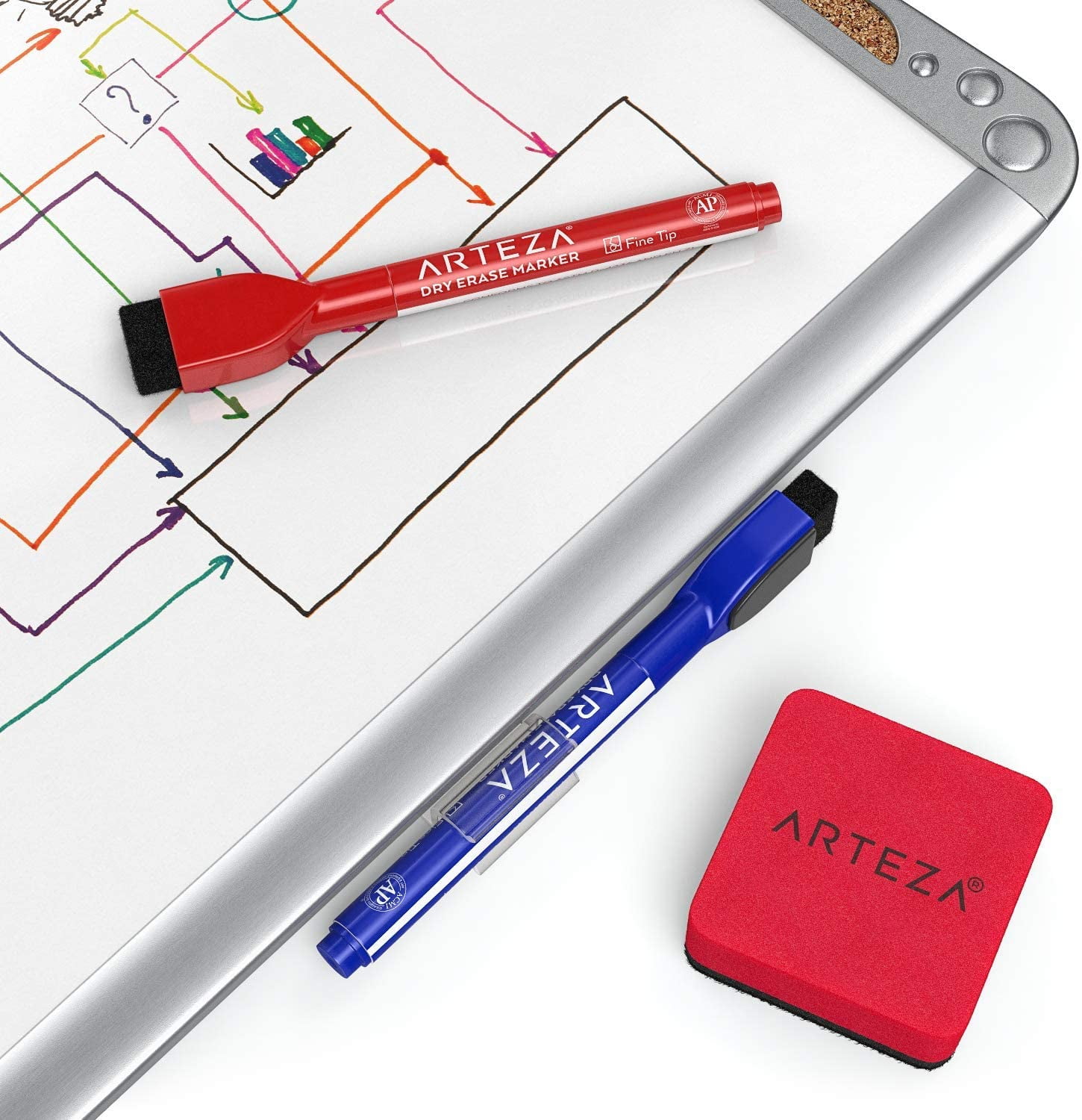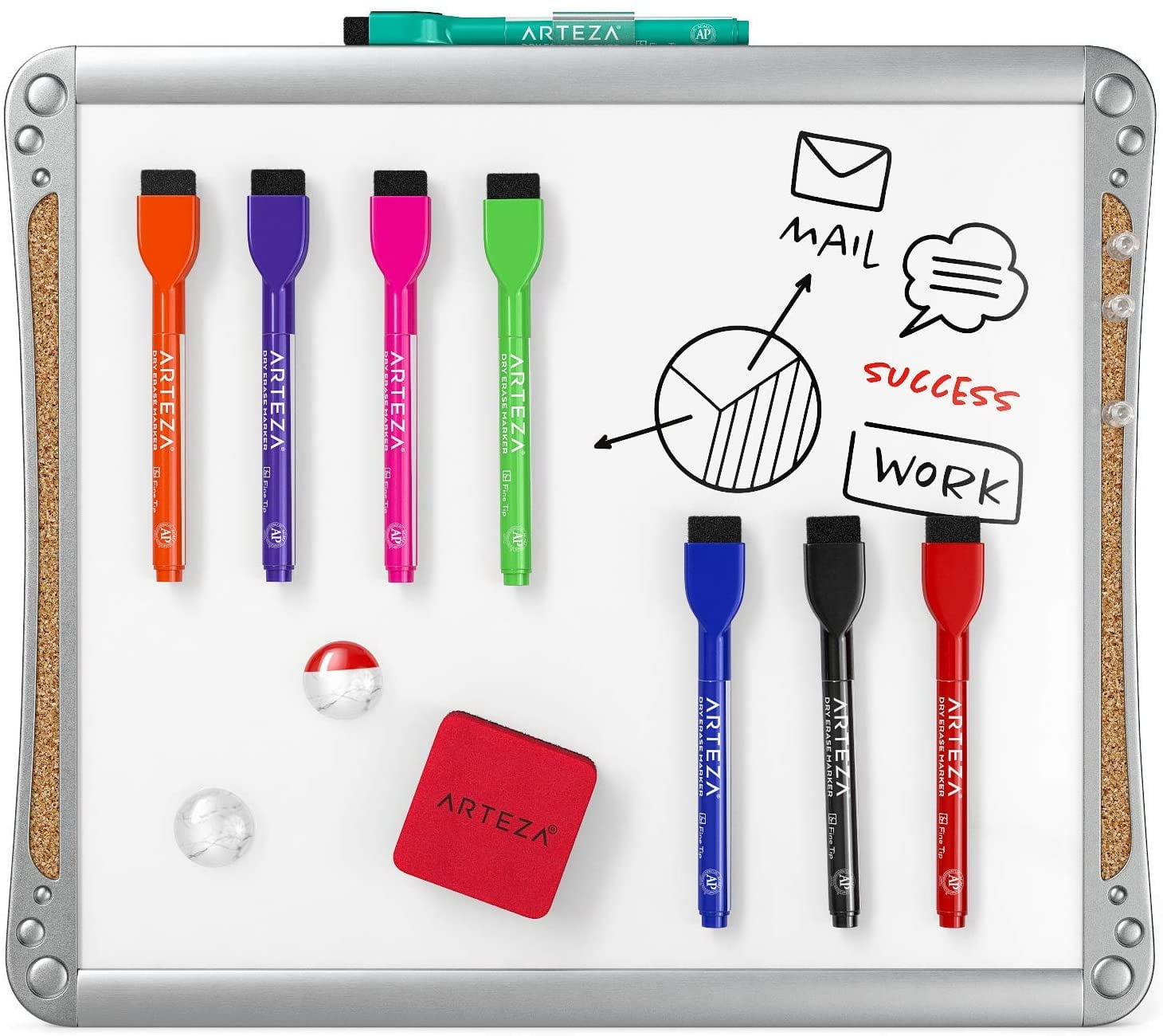 Arteza Premium Set of 2 Framed White Magnetic Dry Erase Lapboards (12’x14′), 16 Markers with Cap Erasers, and Magnets