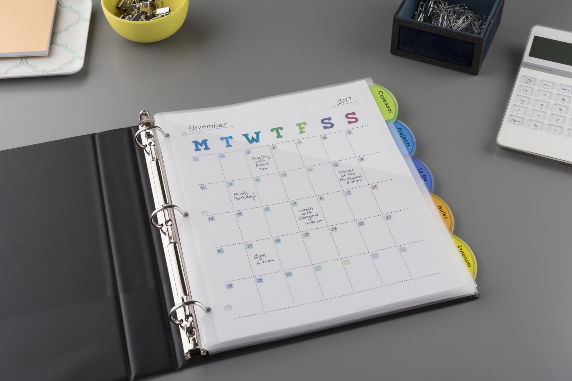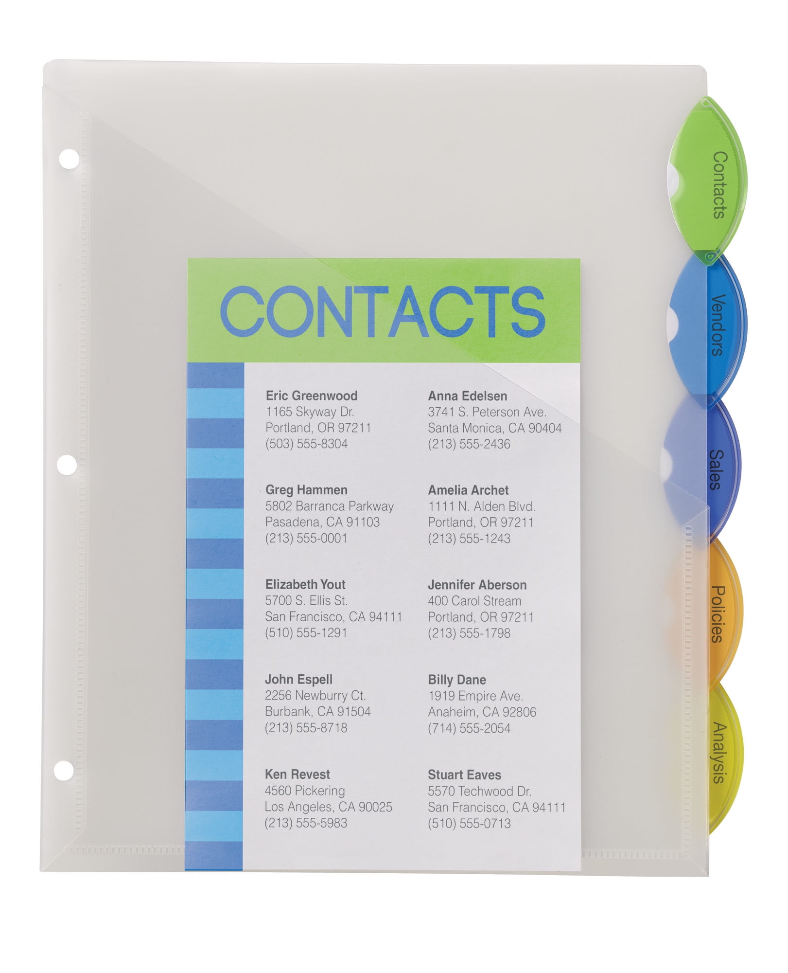 - Find sections quickly and easily with the translucent, clear tabbed dividers featuring bright, multicolor tabs