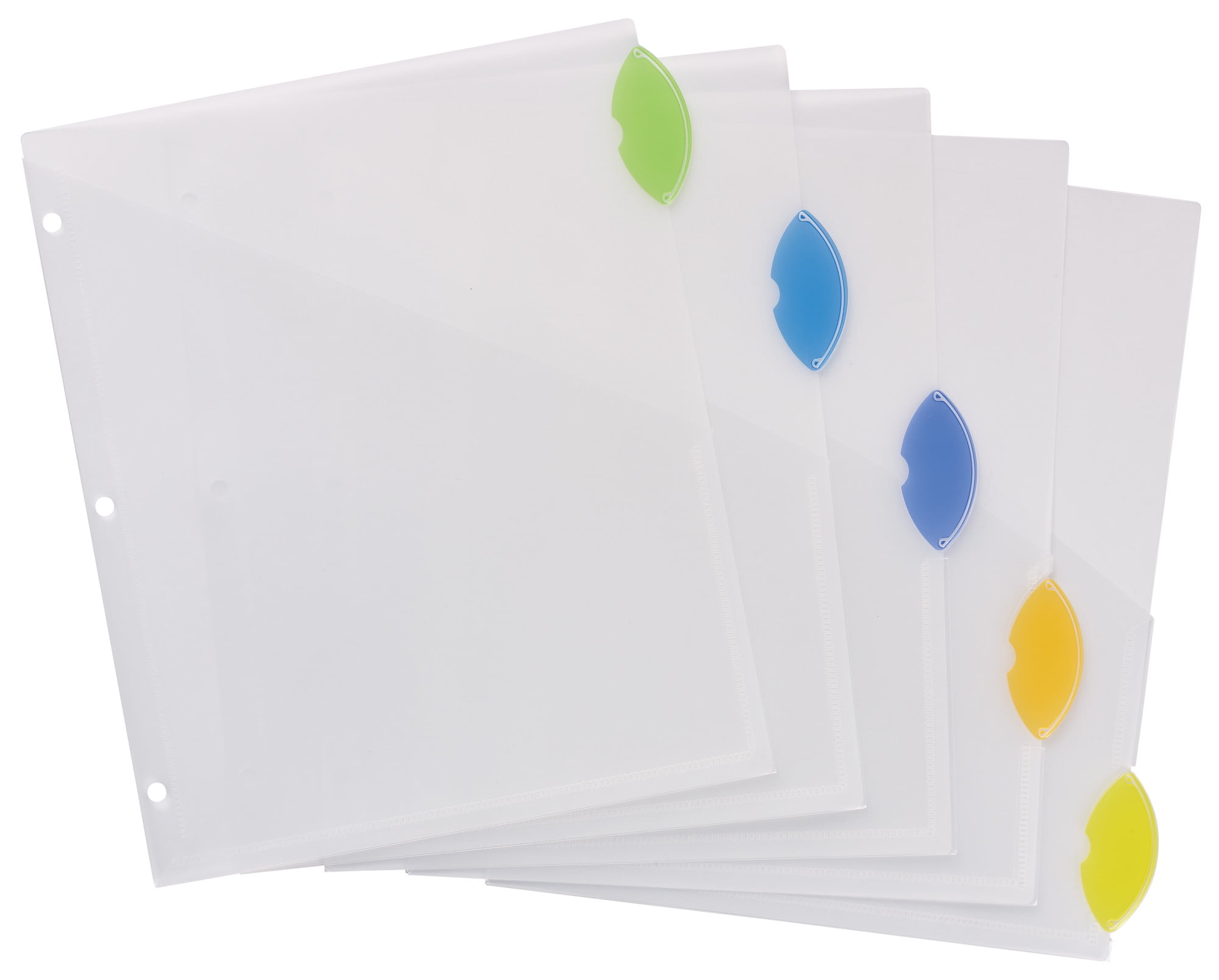 - Store loose papers and unpunched sheets within the front pocket of each 5-tab binder dividers