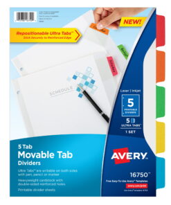 - Reinforced multicolor tabs are preprinted and don’t require inserts or labels