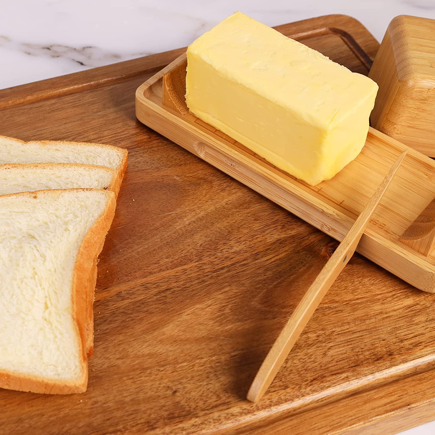 - MADE OF ECO-FRIENDLY BAMBOO: HTB butter dish and knife set are made out of natural bamboo with no artificial materials which makes it safe for environment while helping local farmers. You can use it for any type of solid butter or cream cheese as it accommodates all short and long butter and cheese sticks.