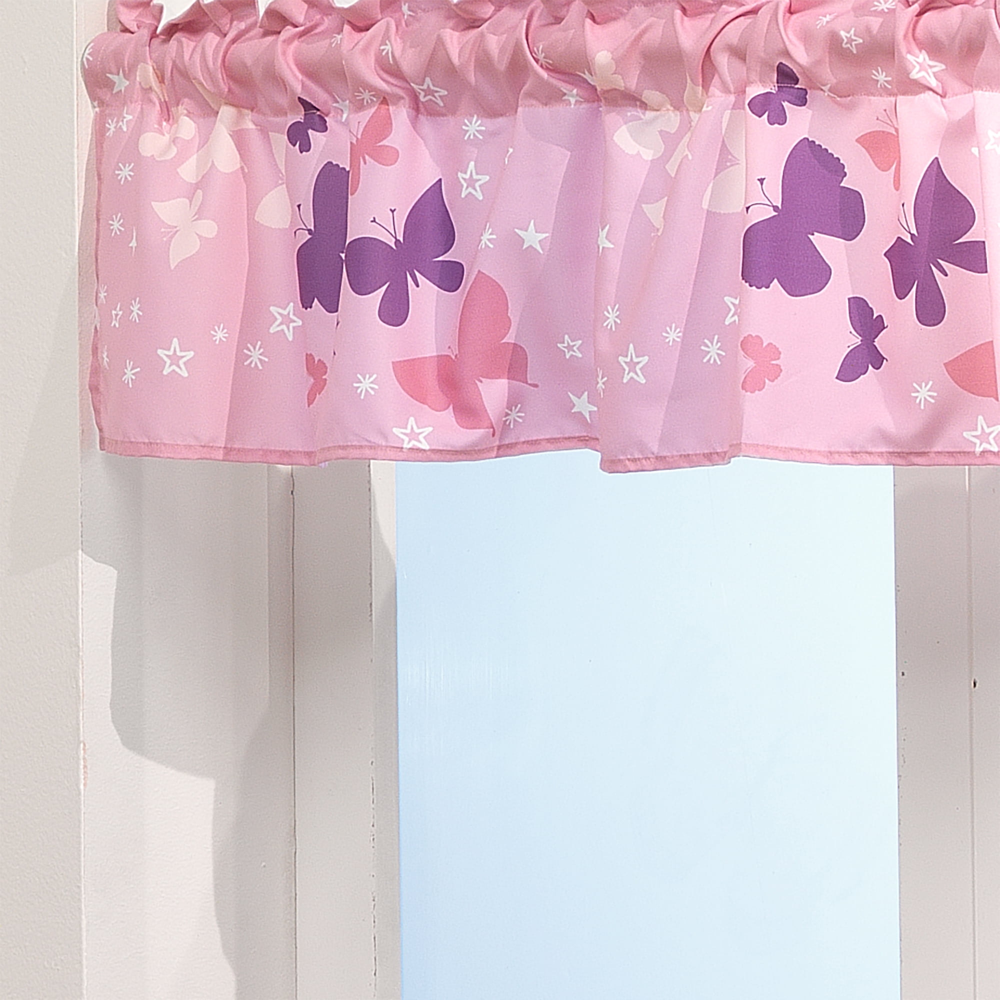 - Colorful Butterflies and white stars decorate this pretty window valance
