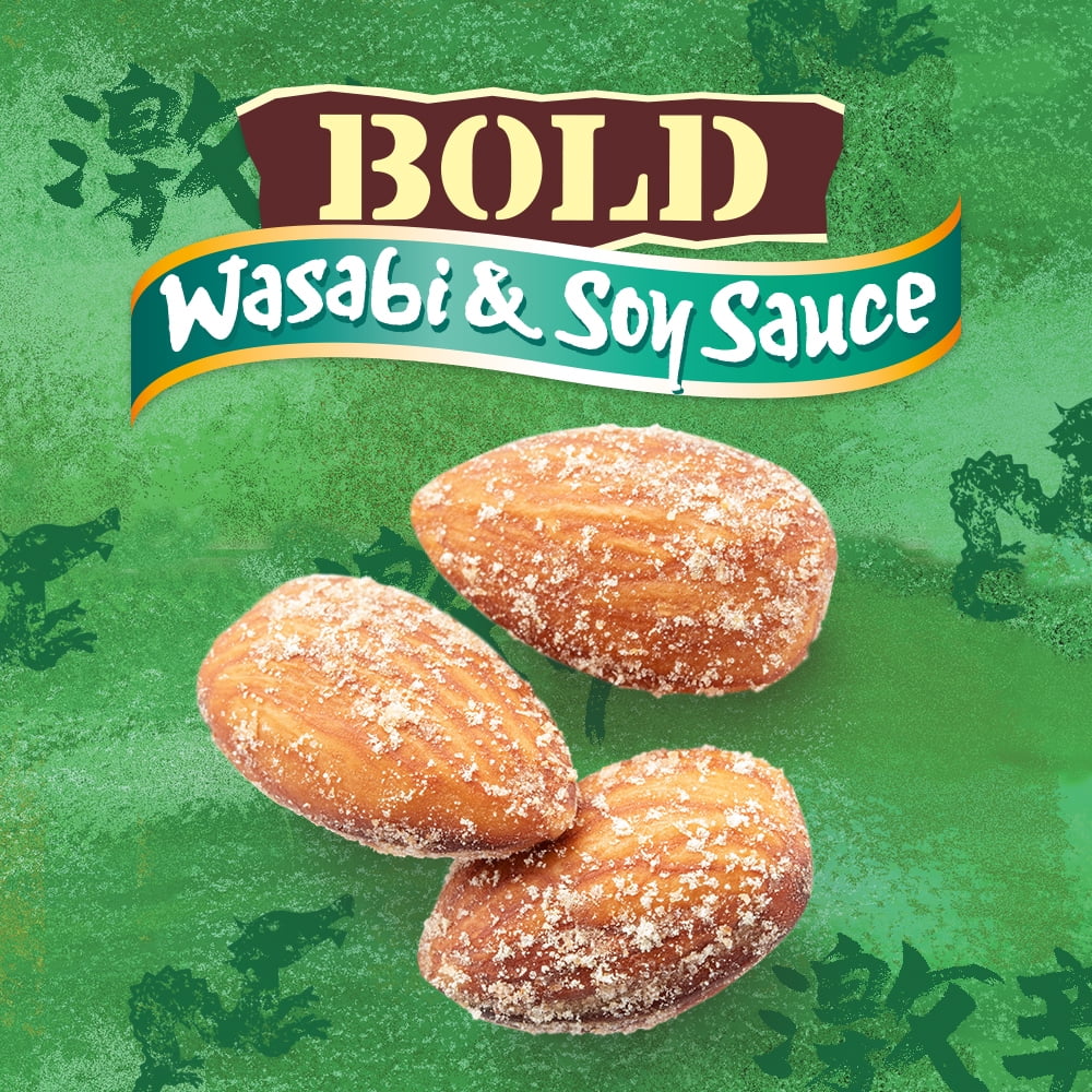 Blue Diamond Almonds Bold Wasabi & Soy Sauce. Consistent quality, bold new flavors and great value. Roasted and seasoned with spicy Bold flavors. Combining the distinctive flavor of Asian style horseradish with the savory taste of soy sauce. Good source of fiber & protein. Contains no cholesterol, artificial ingredients.Blue Diamond Bold Wasabi & Soy 30oz