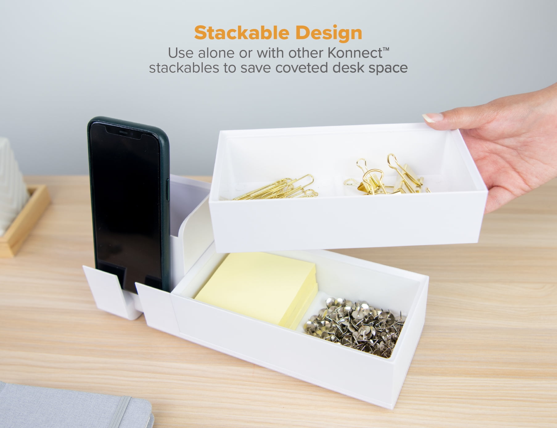 Compatible with the Konnect™ Desk Organizer Power Base and other Konnect™ Stackables