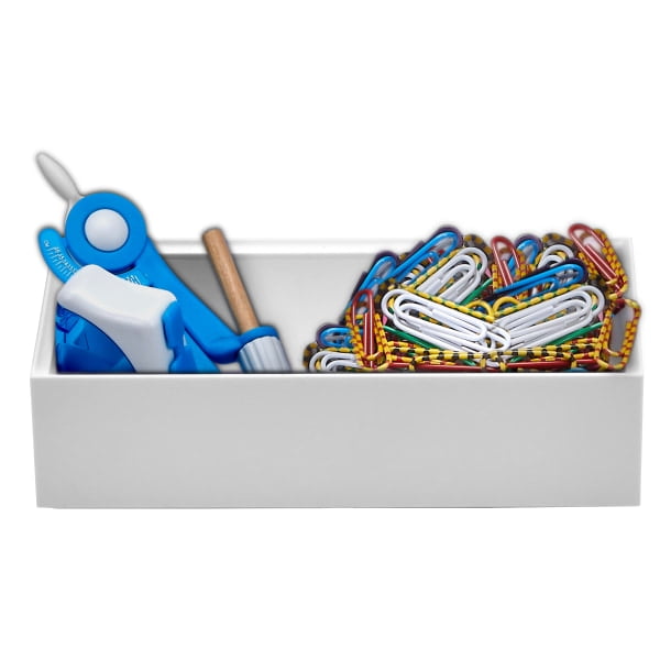 Looking to hit the refresh button on your desk at school or work? Then you’ll want the Konnect™ Stackable Accessory Tray. Not only is this wide accessory tray compatible with the Konnect™ Desk Organizer Power Base and other Konnect™ Stackables like the Stackable Storage Tray and Stackable Pencil Cup, but it also adds extra organization to your desk by securely storing Post It notes, dry erase accessories, paperclips and any other office supplies of your choosing. This modern and durable holder features a built-in divider to create multiple compartments with an open top, making it easy to find, organize and reach any accessory. Arrange your favorite products in this stackable bin so you can customize your workspace in the classroom or home office.