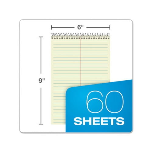 Stiff-back notebook features wire coil ends that are locked for safety and longevity. Gregg-ruled for easy note-taking, each sheet has a faint center line and a green tint to reduce eyestrain. Sturdy back offers writing support even without a desk or table.