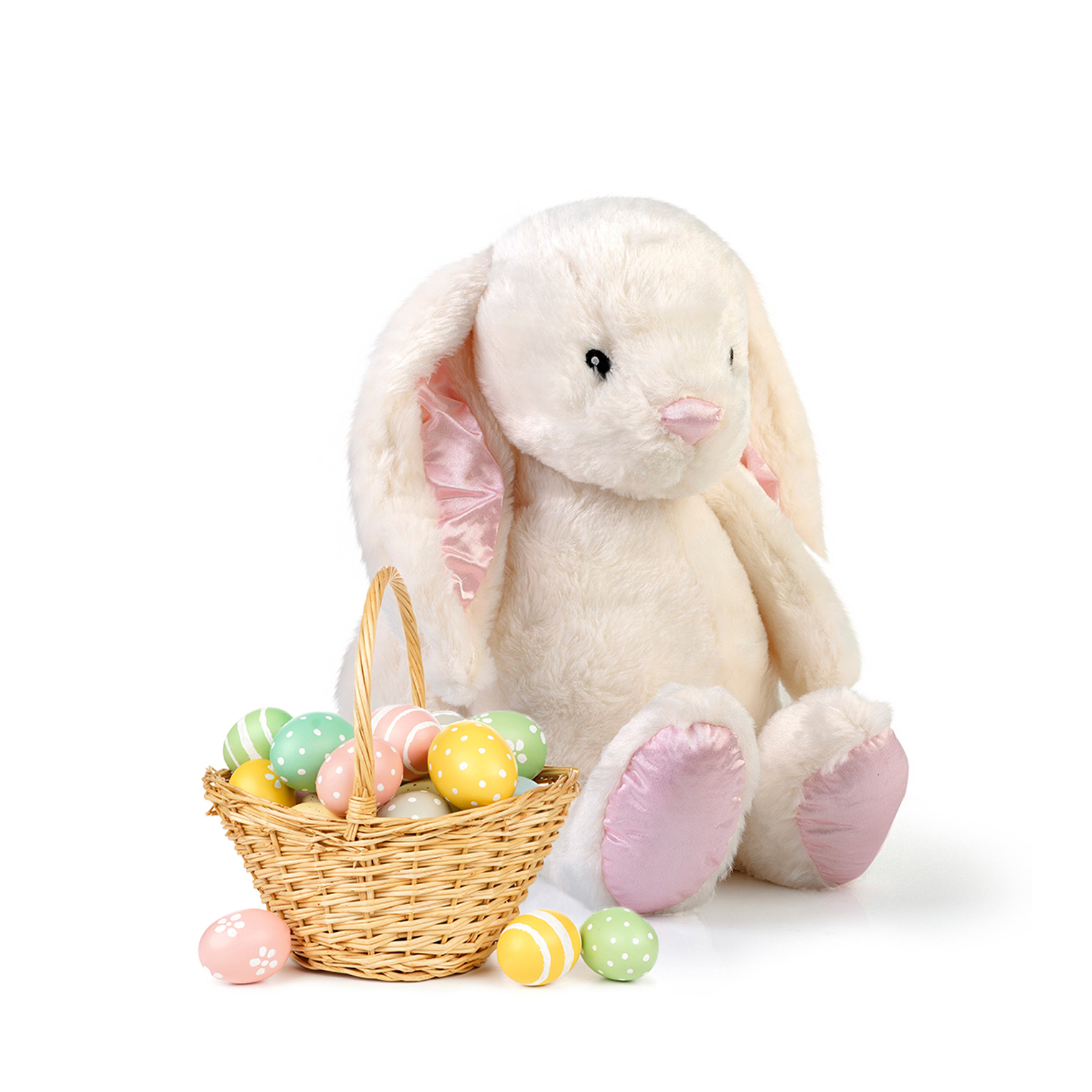 - SOFT & CUTE: This 17 inch white stuffed bunny rabbit with adorable floppy long ears has embroidered eyes, pink satin nose, inside ears and on foot pads. It is super soft and ready for cute cuddles and soft snuggles.