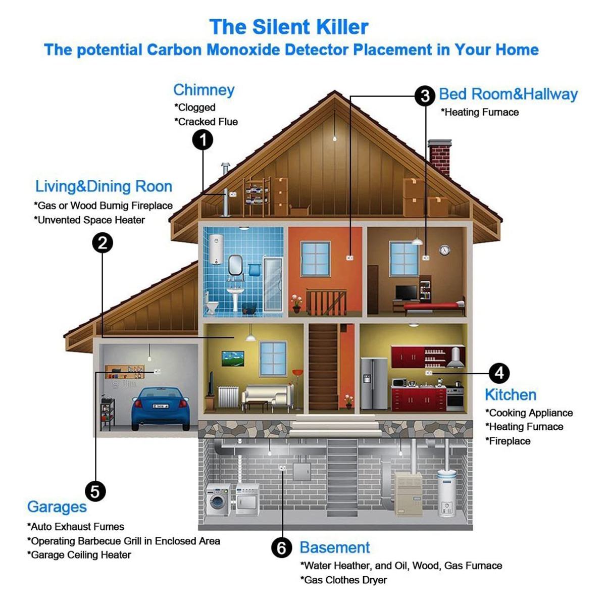 This Co Detector alarm does not contain any radioactive material.alarms should be installed in every room,finished attics and basements, making sure the people in the home will be able to hear and respond to the alarm sound.Applicable to all kinds of places:The carbon alarm is applicable to Company, Factory, Hospital,Shopping Mall, Hotel, School, Housing,Warehouse,Etc.