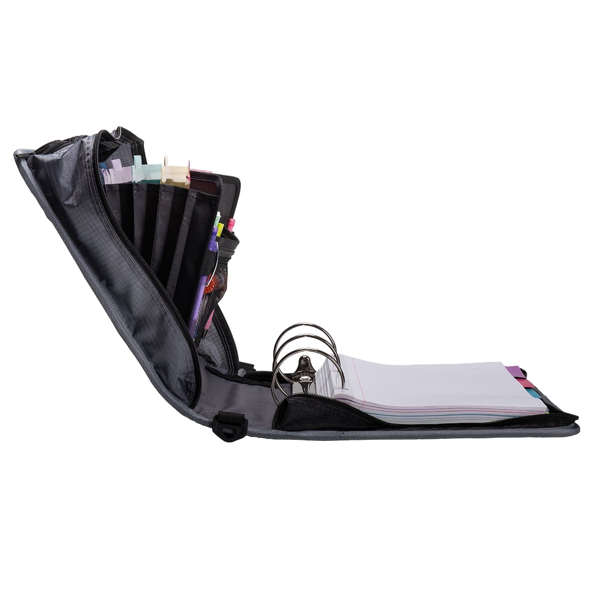 Get the perfect binder for back-to-school or work. The Mighty Zip Tab by Case•it comes with an internal file manager, mesh pockets, and shoulder strap! This 3-ring binder can hold up to 600 sheets of paper with its 3” O-ring design. You’ll find it easy to keep your worksheets organized by subject or topic with a 5-tab, multi-color extendable file manager accessible when fully opened and through a special u-shaped side zip. Within this binder, you can carry all your school supplies or work accessories with several mesh pockets inside. A shoulder strap and hand strap were designed so you can easily move around hands-free, making it an ideal accessory for your on-the-move lifestyle.