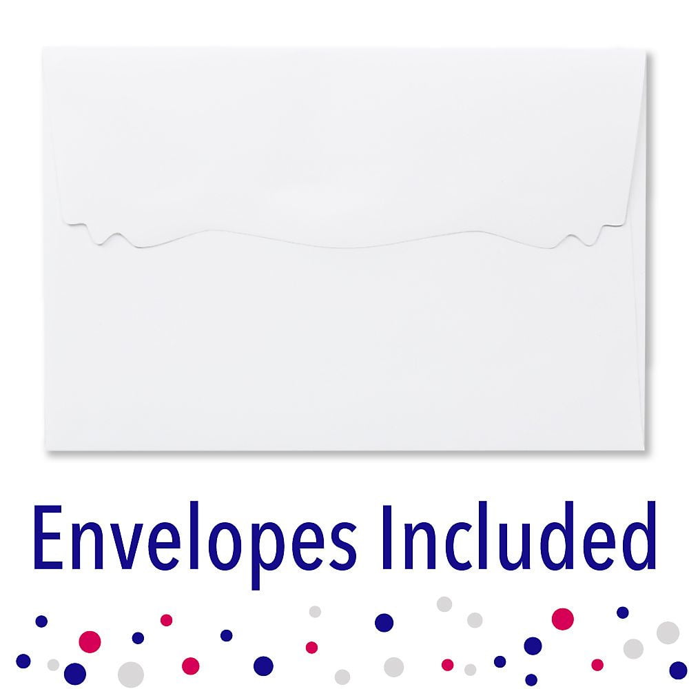 - #50 party invitations SIZE 7 inches by 5 inches. The included envelopes measure 5 inches by 7 inches.