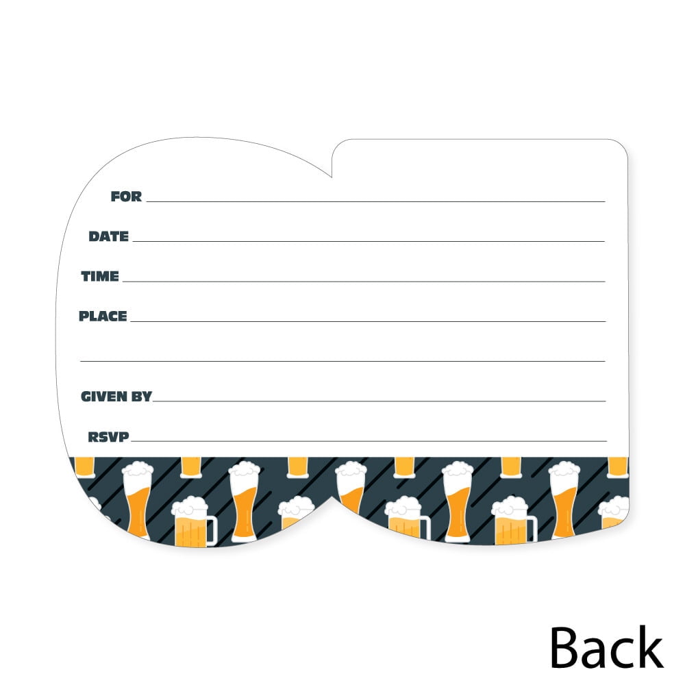 - The back of each Cheers and Beers to 50 Years party invitation has space to add your party details: For: Date: Time: Place: Given By: RSVP: