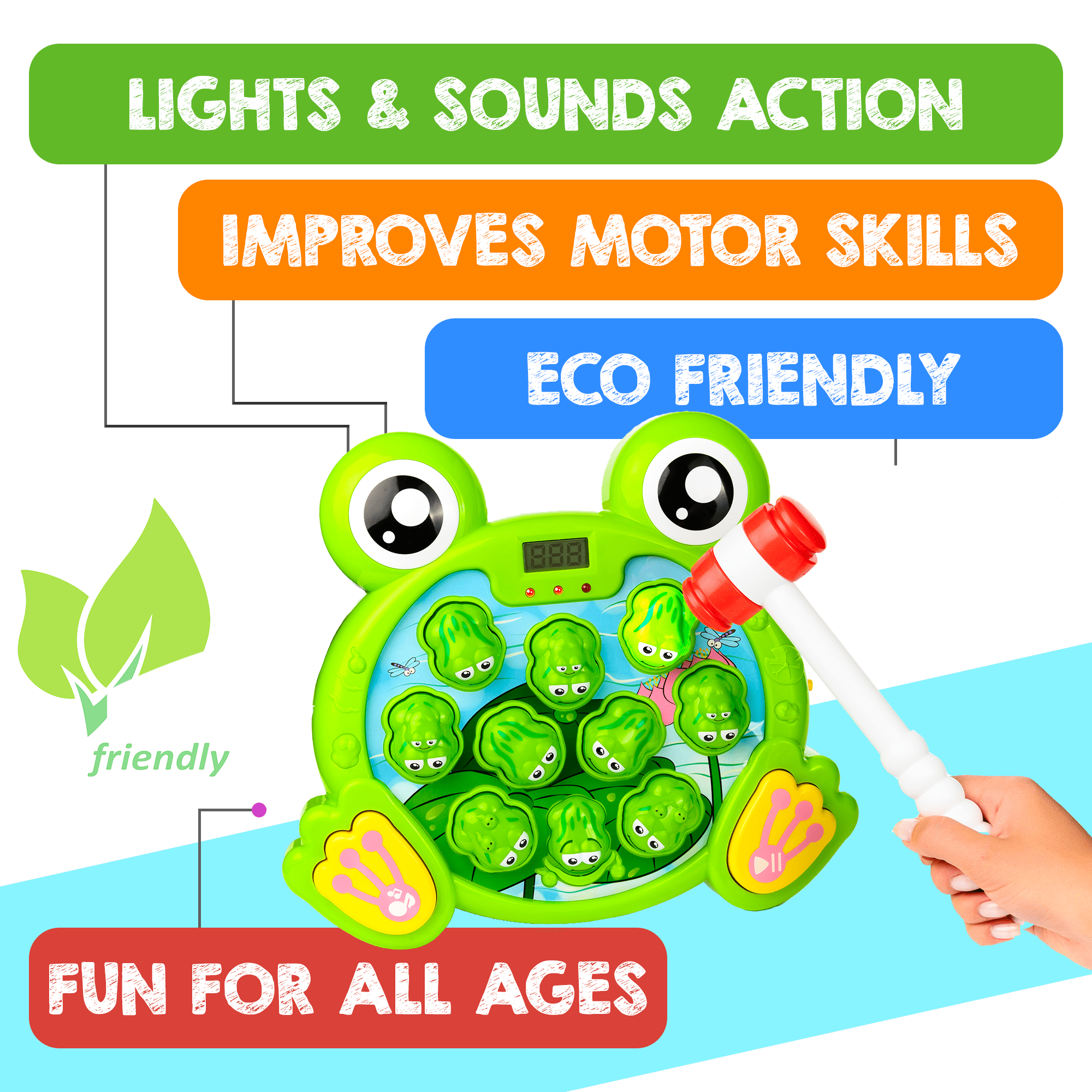- HAPPY PARENT CHILD INTERACTION TOY: Do you want a toy that creates a bond between you and your child? Create a quality time with your child with these interactive games for kids learning toys ages 3-5. Both adults and kids can enjoy the benefit of competing to get the better score by hammering the flashing frogs that light up when hit and the points will be displayed in the LCD counter.