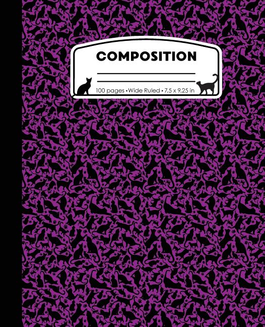 Composition: Cat Pattern Purple Marble Composition Notebook Wide Ruled 7.5 X 9.25 In, 100 Pages (50 Sheets) Book for Kids, School,