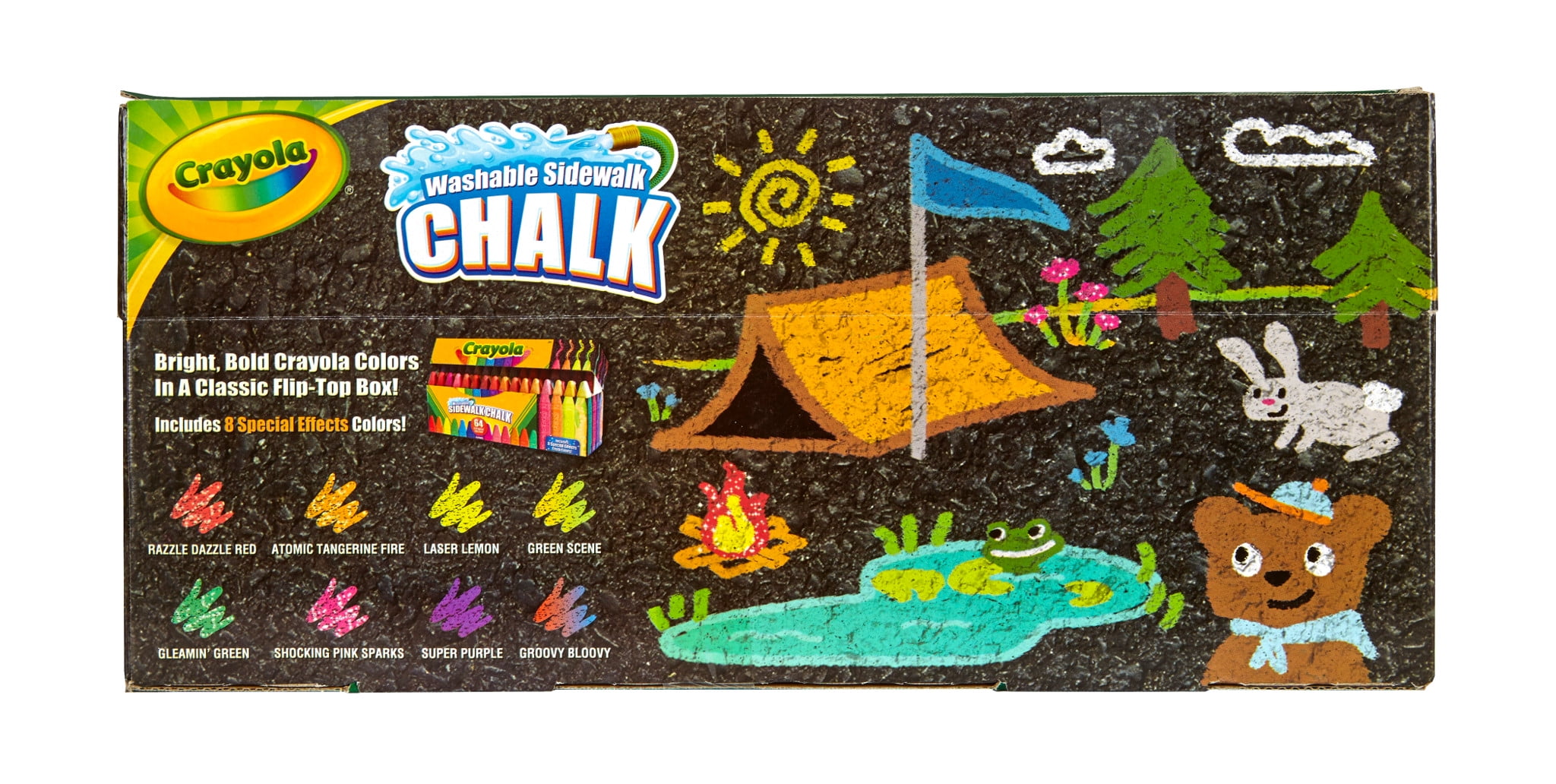 Create colorful murals, large handwritten messages, or foundations for traditional chalk games including hopscotch, tic tac toe and four square. Crayola chalk features a special anti roll shape to prevent it from rolling down driveways and other surfaces. Kids can keep their chalk close at hand as they create one of a kind sidewalk chalk art. Crayola Sidewalk Chalk washes clean from sidewalks and driveways, simply use a water hose to spray away the color Ideal for children ages 3 and up. Beginner unisex child. Assorted colors