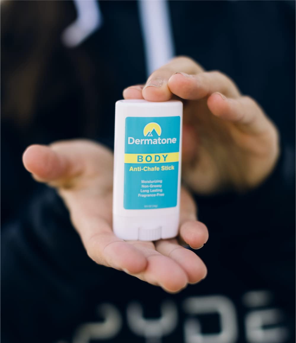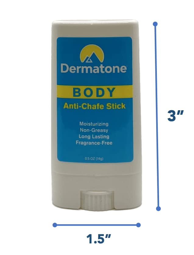 - PERFECT FOR ENDURANCE SPORTS: Made in the USA, Dermatone body anti chafe stick is paraben, cruelty and fragrance free. The Moisturizing, long lasting, medicated formula makes our anti chafe stick perfect for endurance sports like long distance running, biking, triathlons, marathons, hiking, riding, surfing and everyday use