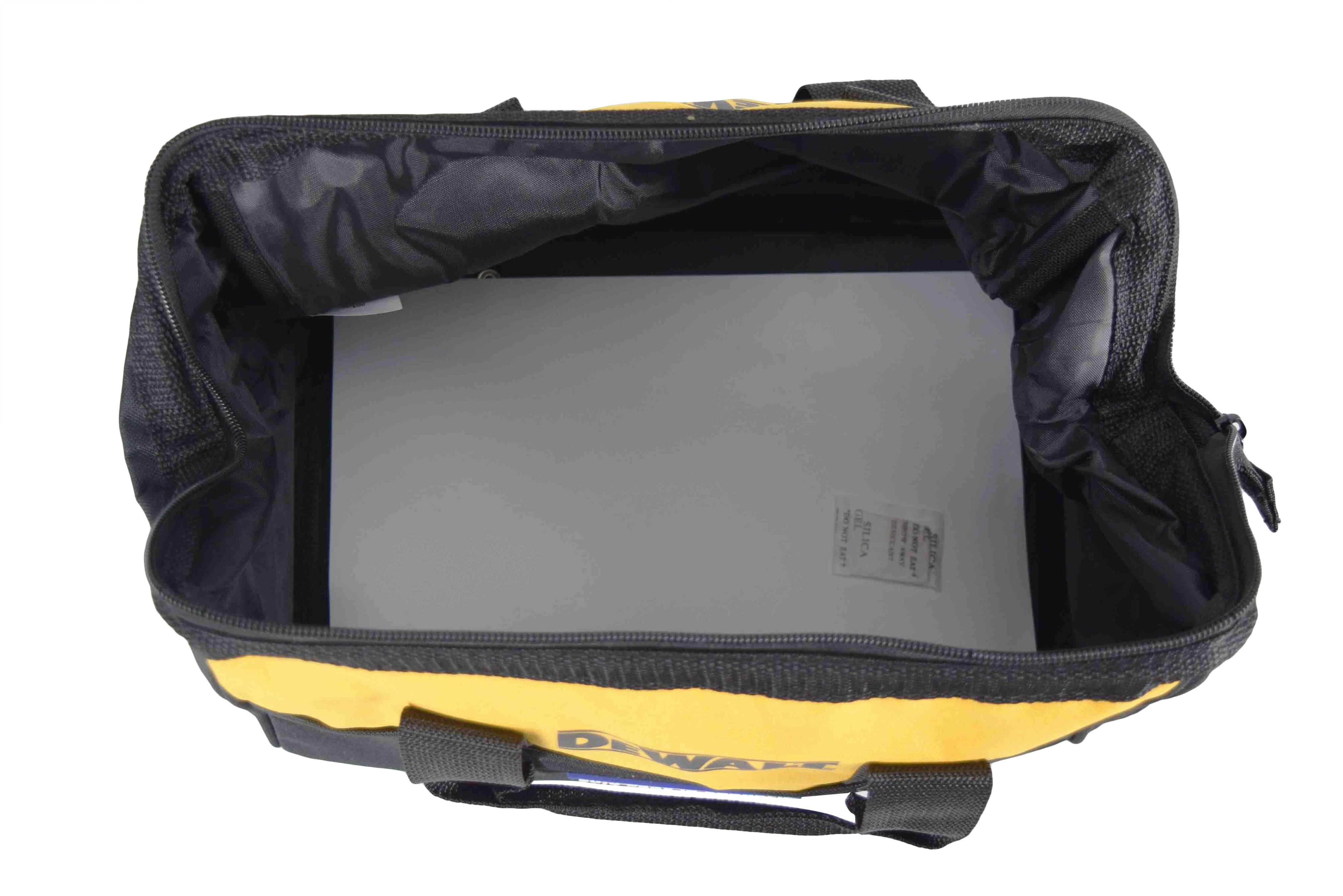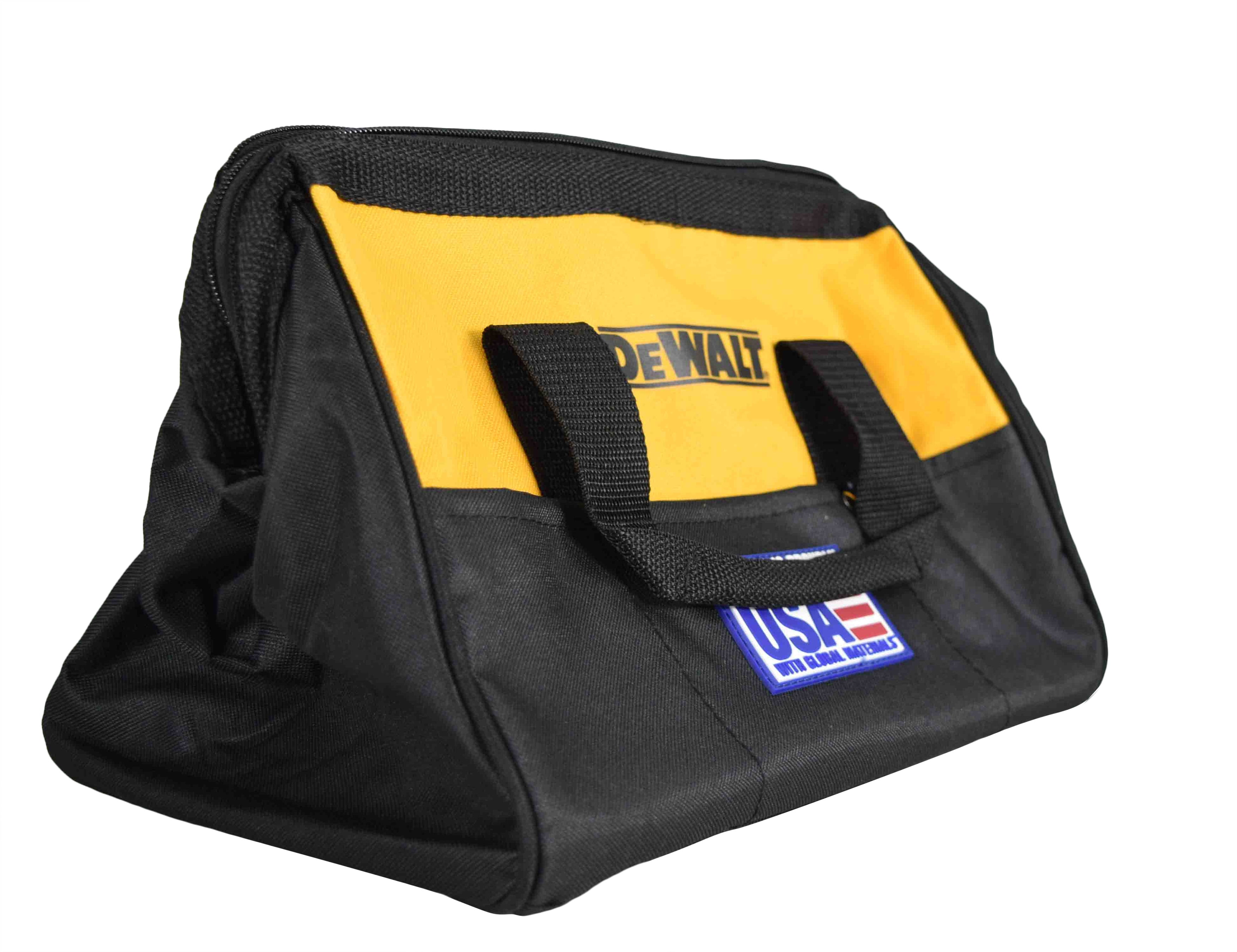 DeWalt 12" Tool Bag – Yellow/BlackDescription:This black and yellow DeWalt tool bag is 12" long. It is great for carrying and storing power tools. Its tough poly construction resists abrasion and wear, and its heavy duty handles provide more jobsite security.
