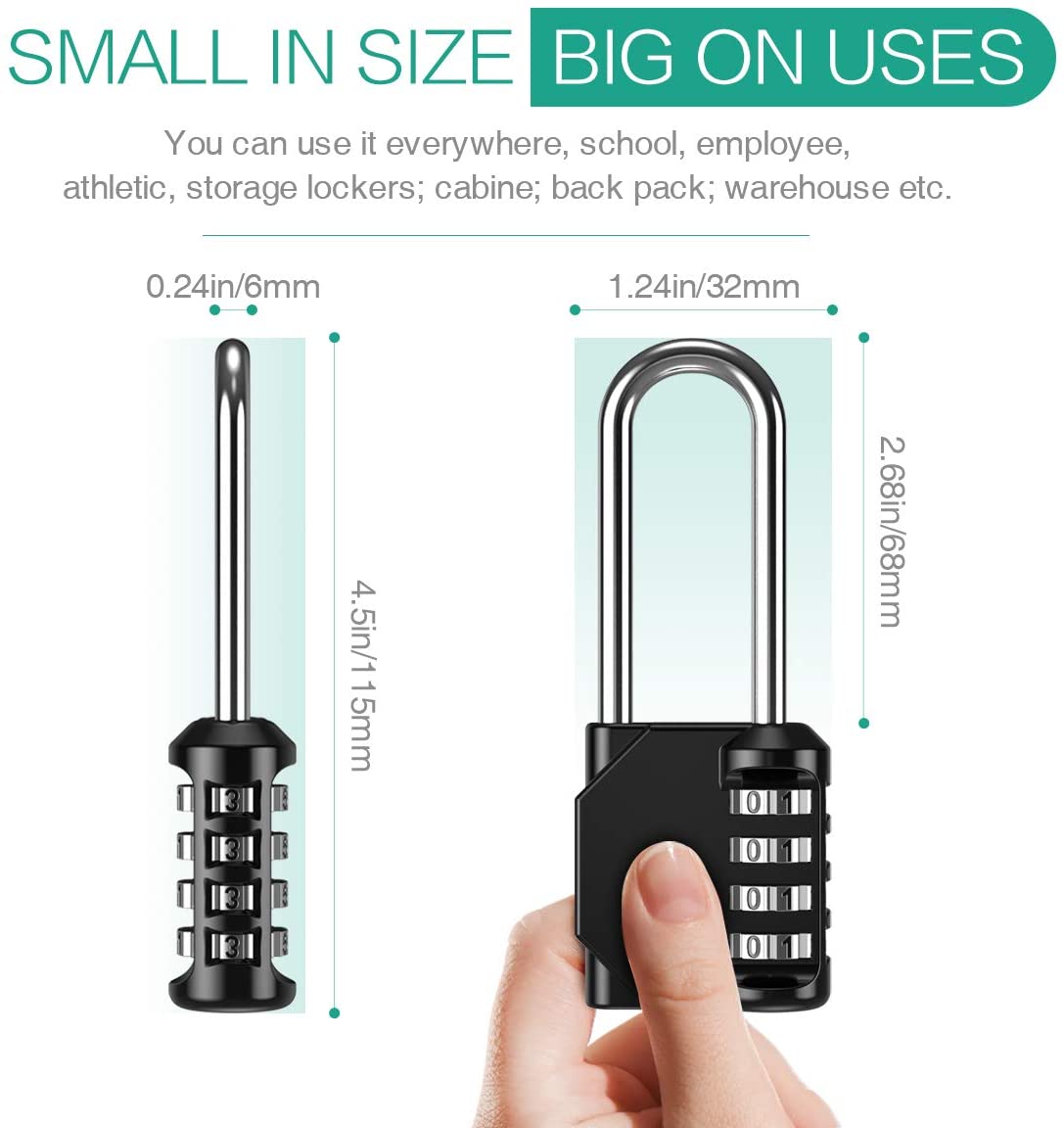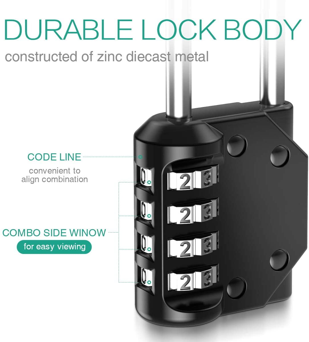 Digit Combination Lock, 2.6 Inch Long Shackle Resettable Padlock, Outdoor Waterproof Gate Lock for School, Employee, Gym & Sports Locker, Case, Toolbox, Fence – 2 Pack