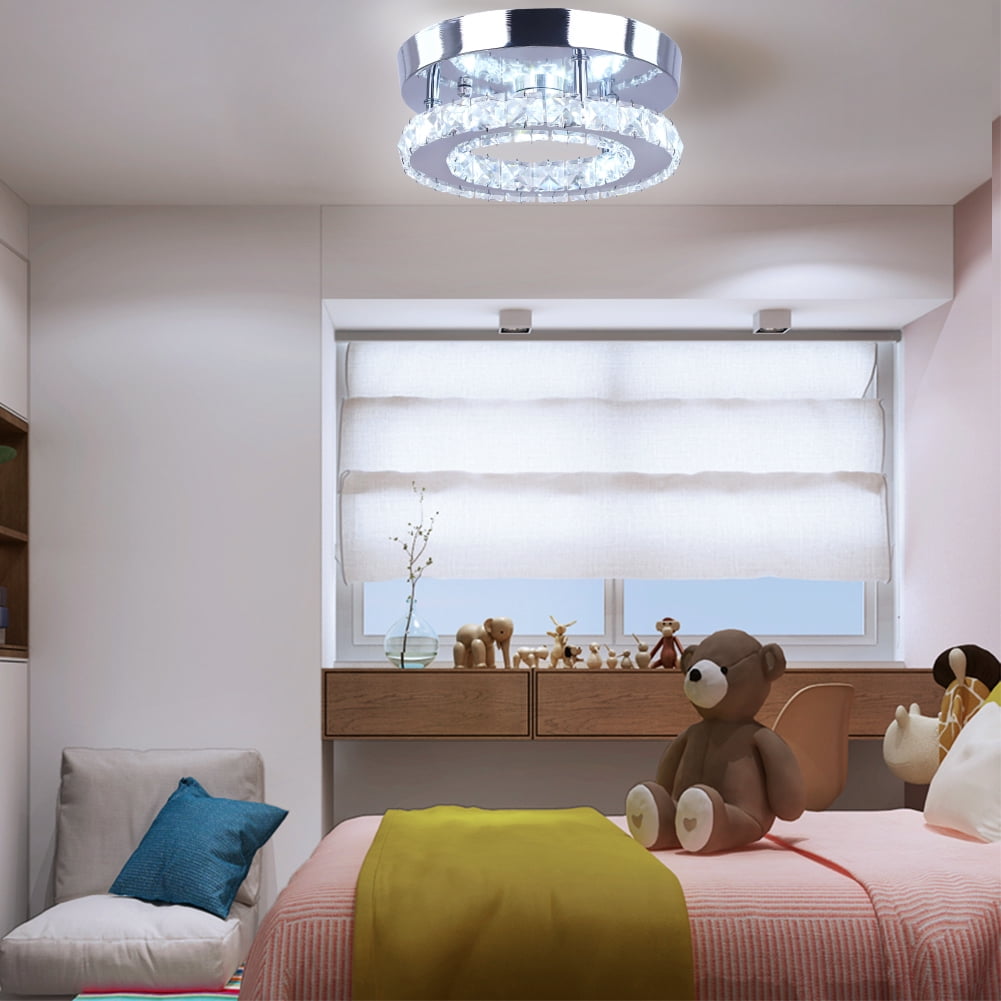 Diisunbihuo Modern Mini Led Chandelier Semi Flush Mount Round Crystal Ceiling Lighting Crystal Lamp for Bedrooms Dinning Rooms Hallway