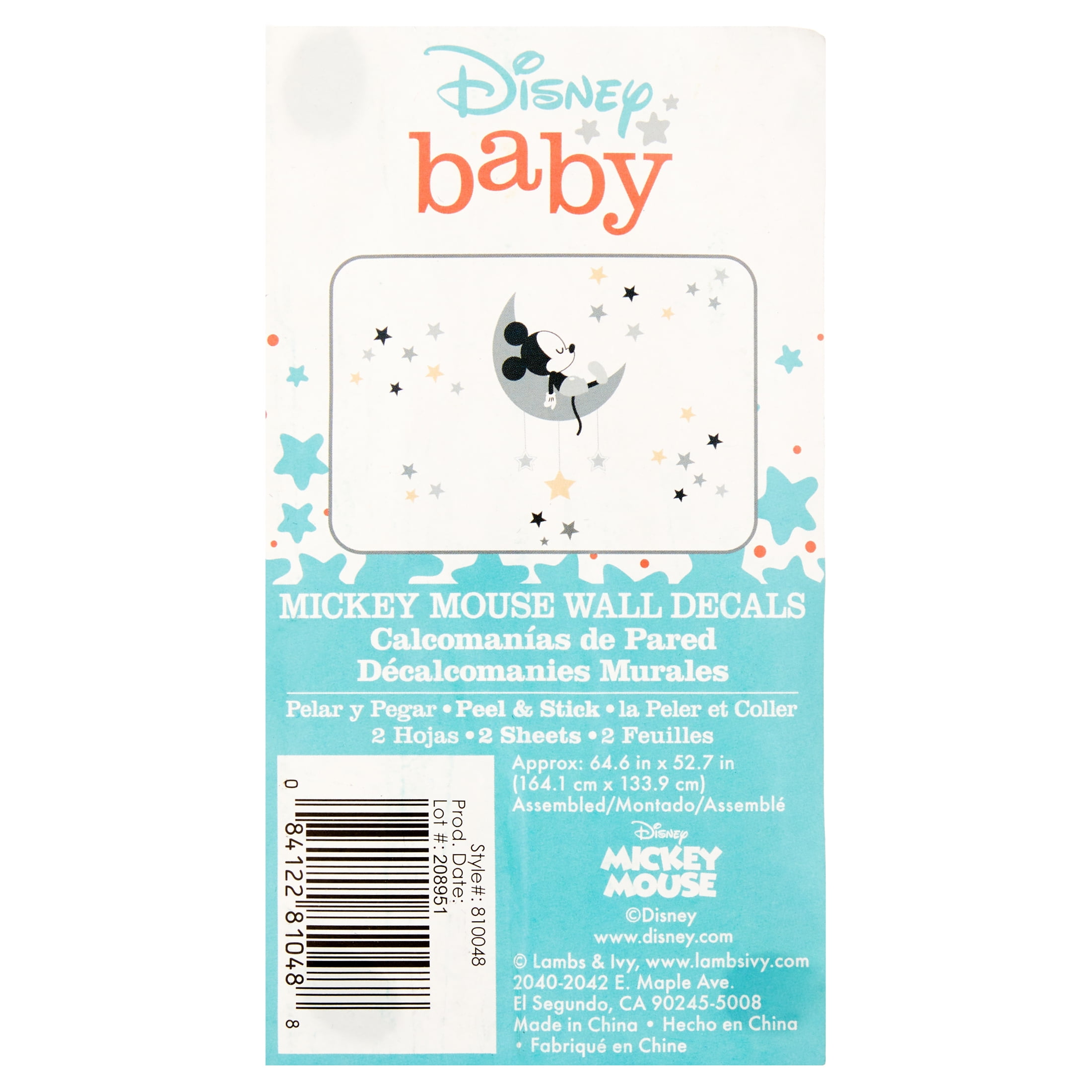 Disney Baby Mickey Mouse Gray, Yellow Celestial Wall Decals by Lambs and IvyDecorate your nursery walls with these custom Mickey Mouse wall decals. They feature everyone’s favorite Mickey Mouse napping on a crescent moon. Mickey is surrounded by an array of multiple colored stars of various sizes. These are easy to apply and remove. No tacks, no tape, no clutter.