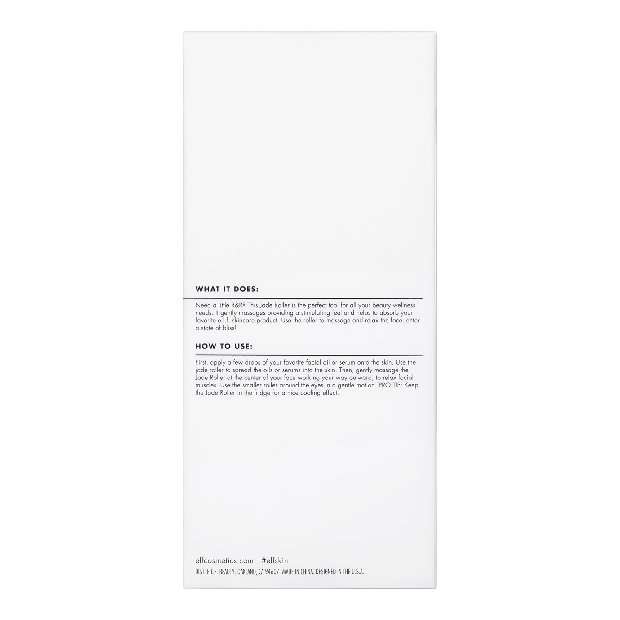 e.l.f. Cosmetics Jade Facial Roller is created to help you bliss out, roll away tension, and improve the overall look and feel of your skin. This elegant tool is where beauty meets wellness—it gently massages your face to stimulate energy, soothe tired skin, and prep your face to better absorb oils and serums. The dual-ended design features a large roller that smoothly glides over your face and neck and a small roller for delicate, hard-to-reach areas like your under-eyes. For best results, use with e.l.f. skincare products and gently work the roller from the center of your face outward. Want an extra cooling effect? Store your jade roller in the fridge before use.