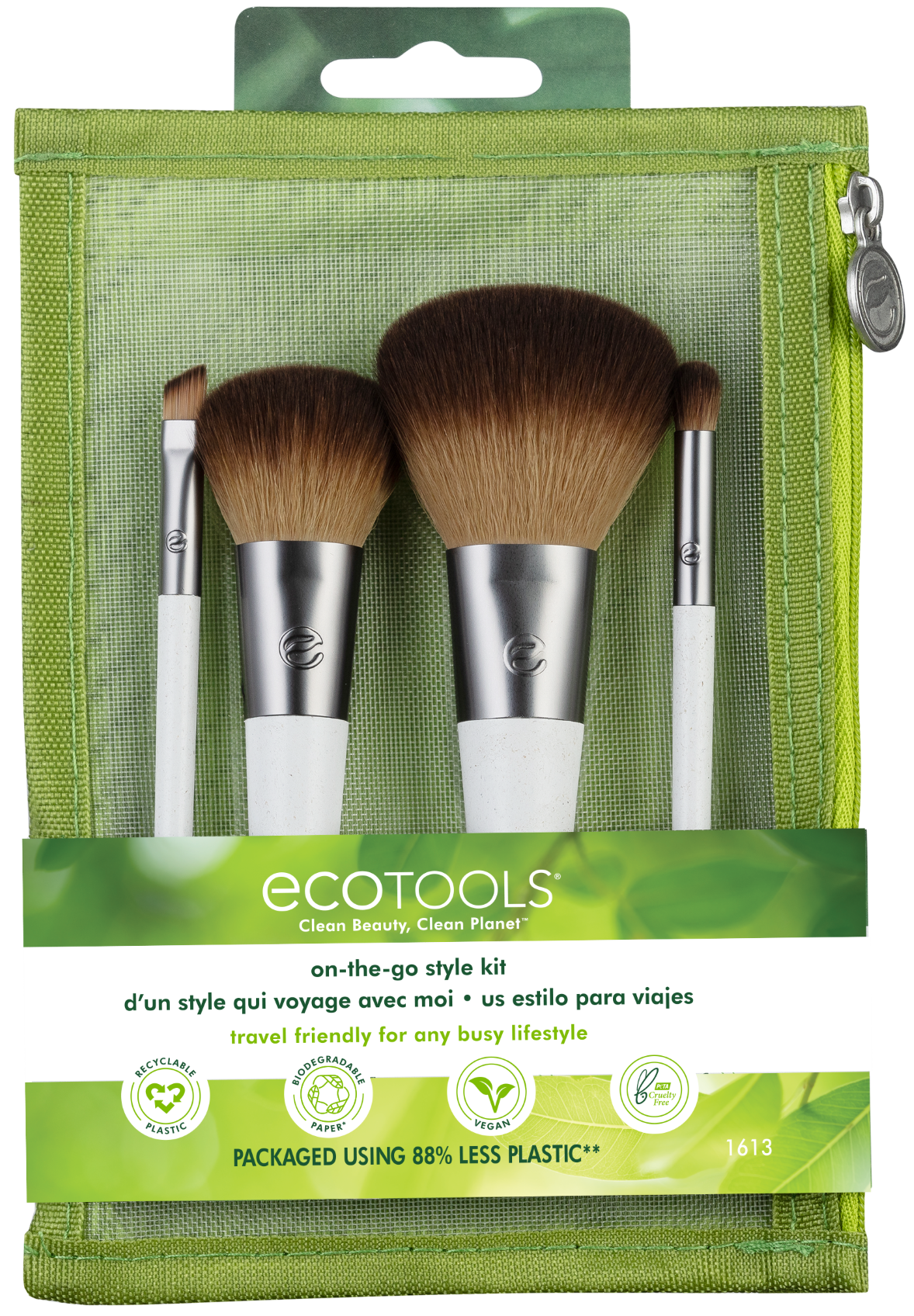 EcoTools On-The-Go Style Makeup Brush Kit, Travel Friendly, Convenient Makeup Tools for Foundation, Blush, and Eyeshadows, 5 Piece Set