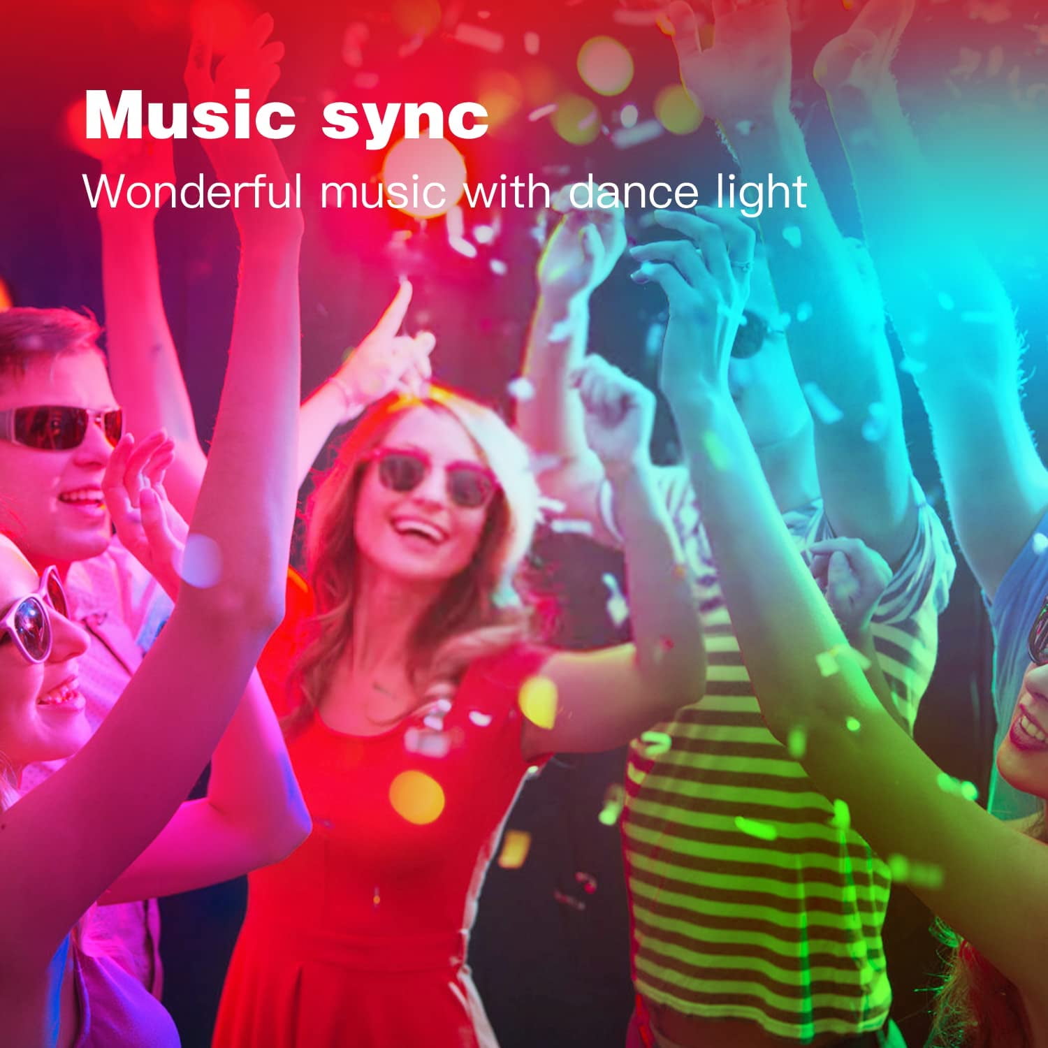 - [ Music sync & voice activated ] With built-in sensitivity device mic or your phone mic, you can explore how the color of the room lights changing with the rhythm of the sound and music, which makes your party lively.