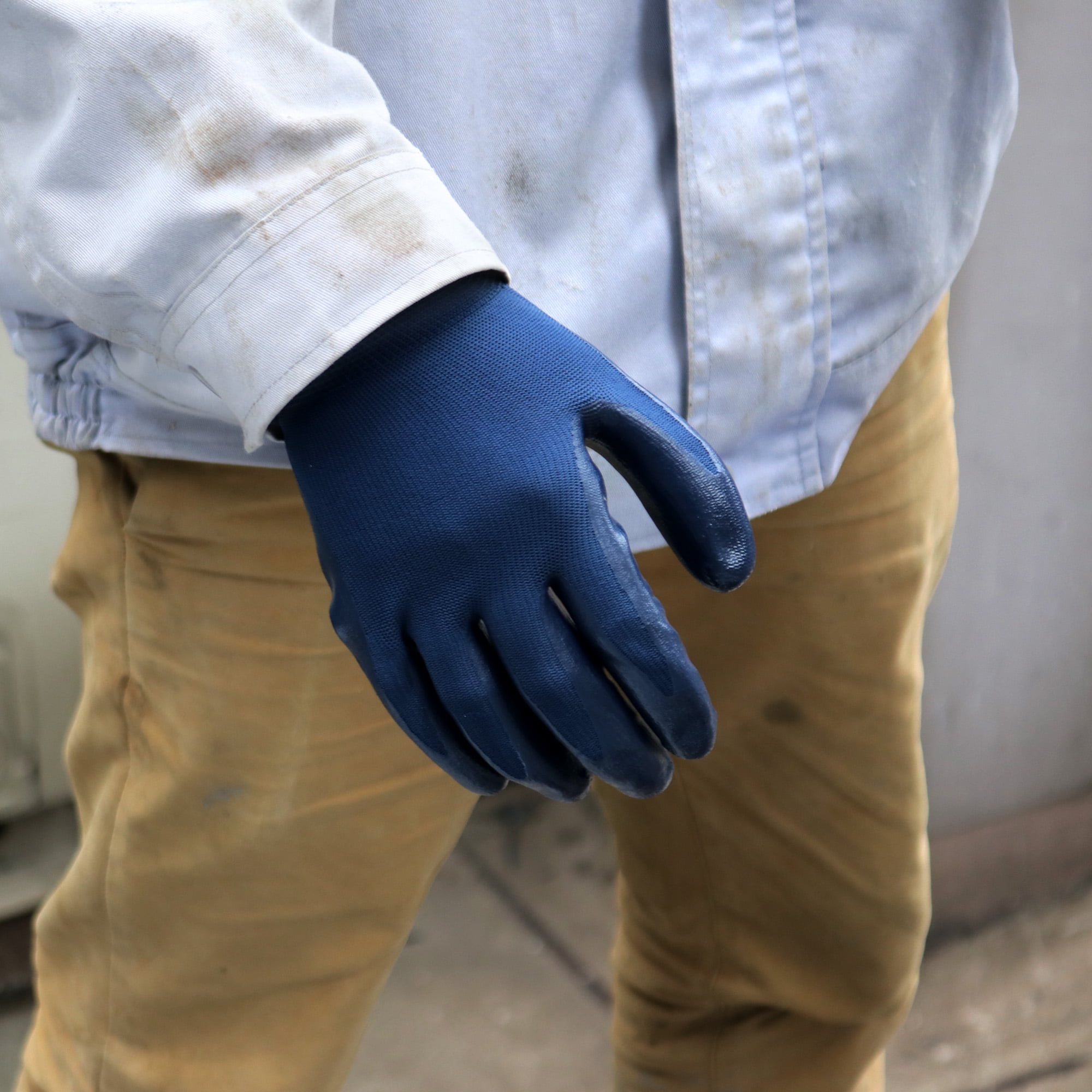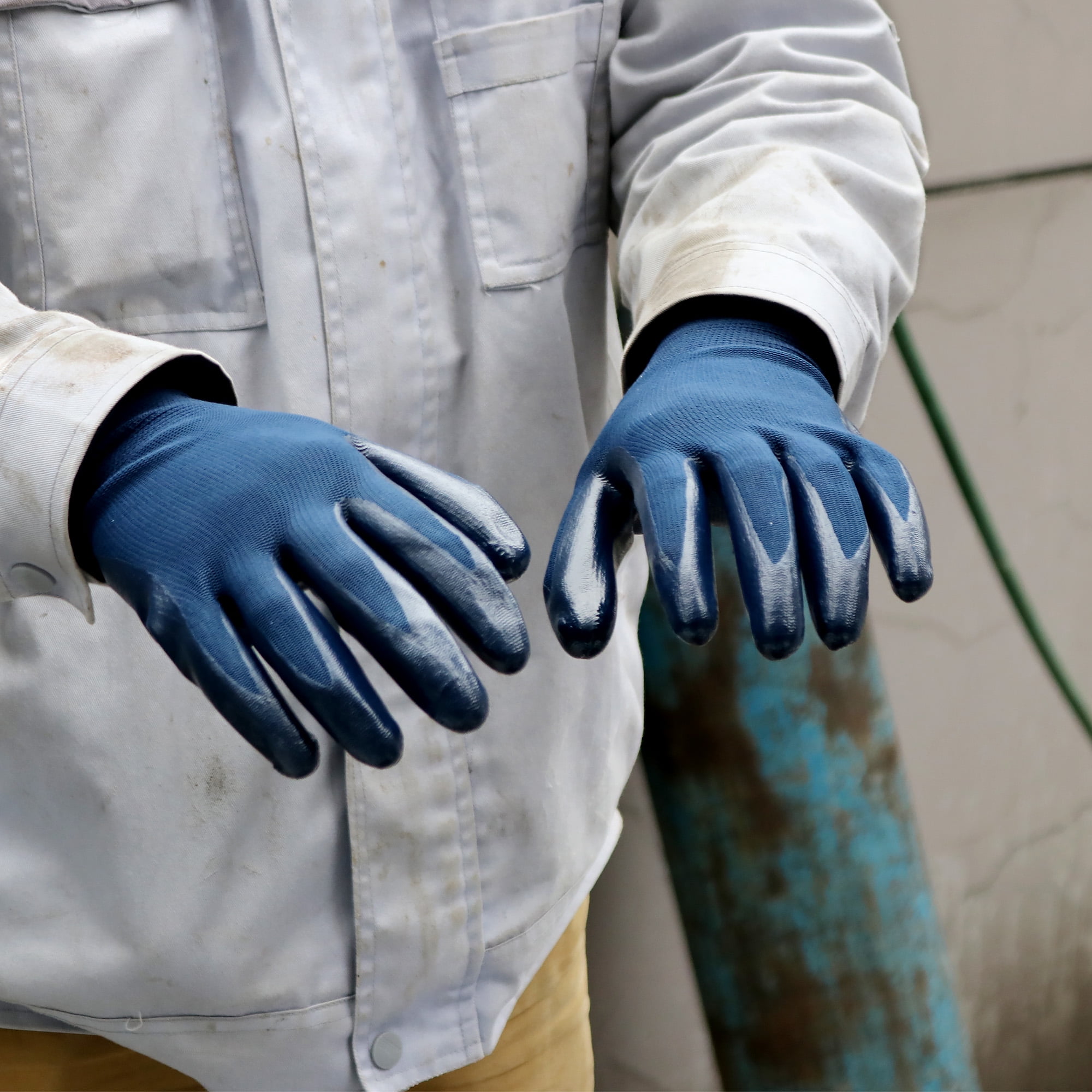 - Smooth nitrile coated on palm provides excellent anti-slip & grip, abrasion & waterproof.