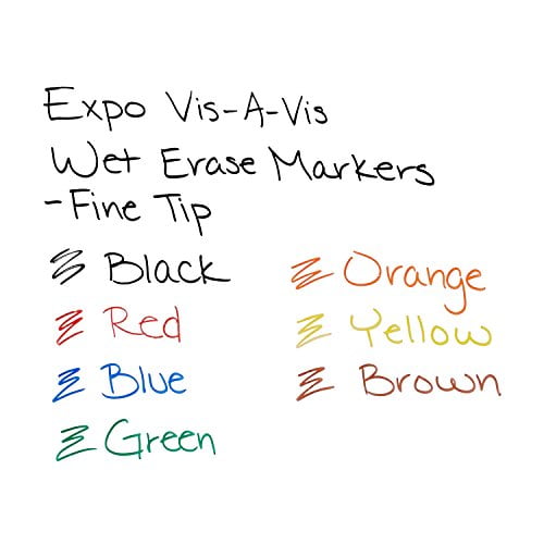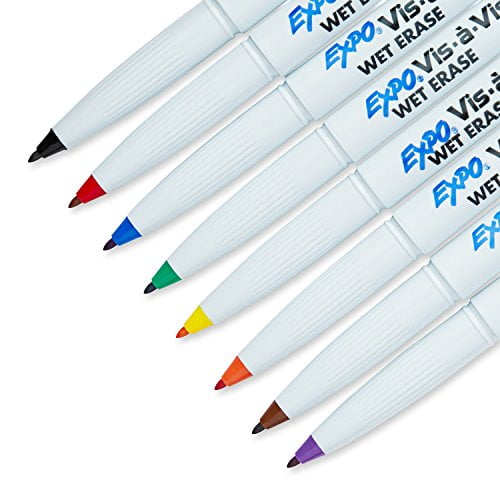 - EXPO Vis-a-Vis wet erase markers that easily wipe off with a damp cloth