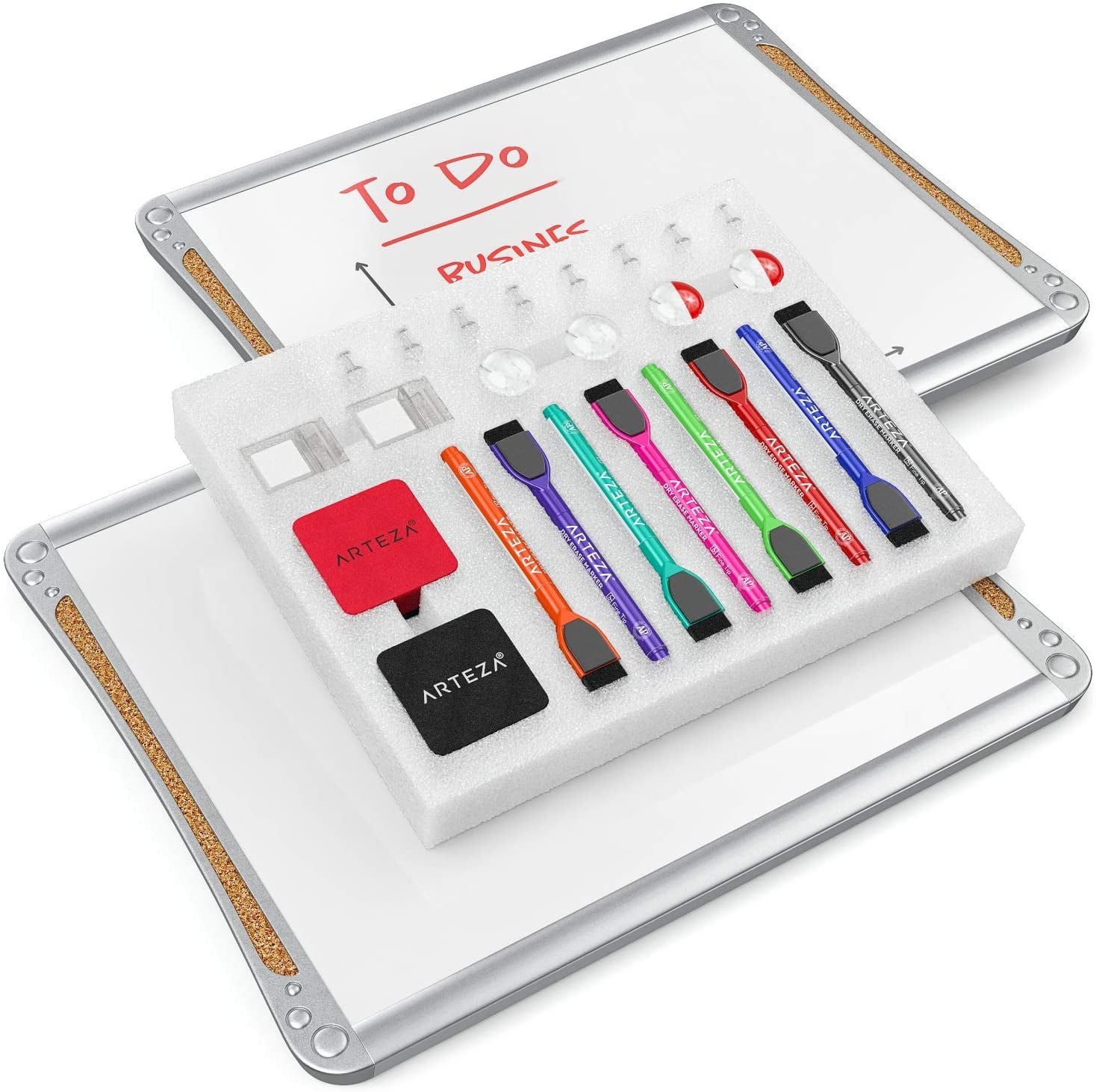 Set includes everything you need for your whiteboard. Includes:1 Black Chisel Tip Marker1 Red Chisel Tip Marker 1 Blue Chisel Tip Marker 1 Green Chisel Tip Marker1 Expo Block EraserOne 2 Ounce Bottle of Mild Expo Cleaner