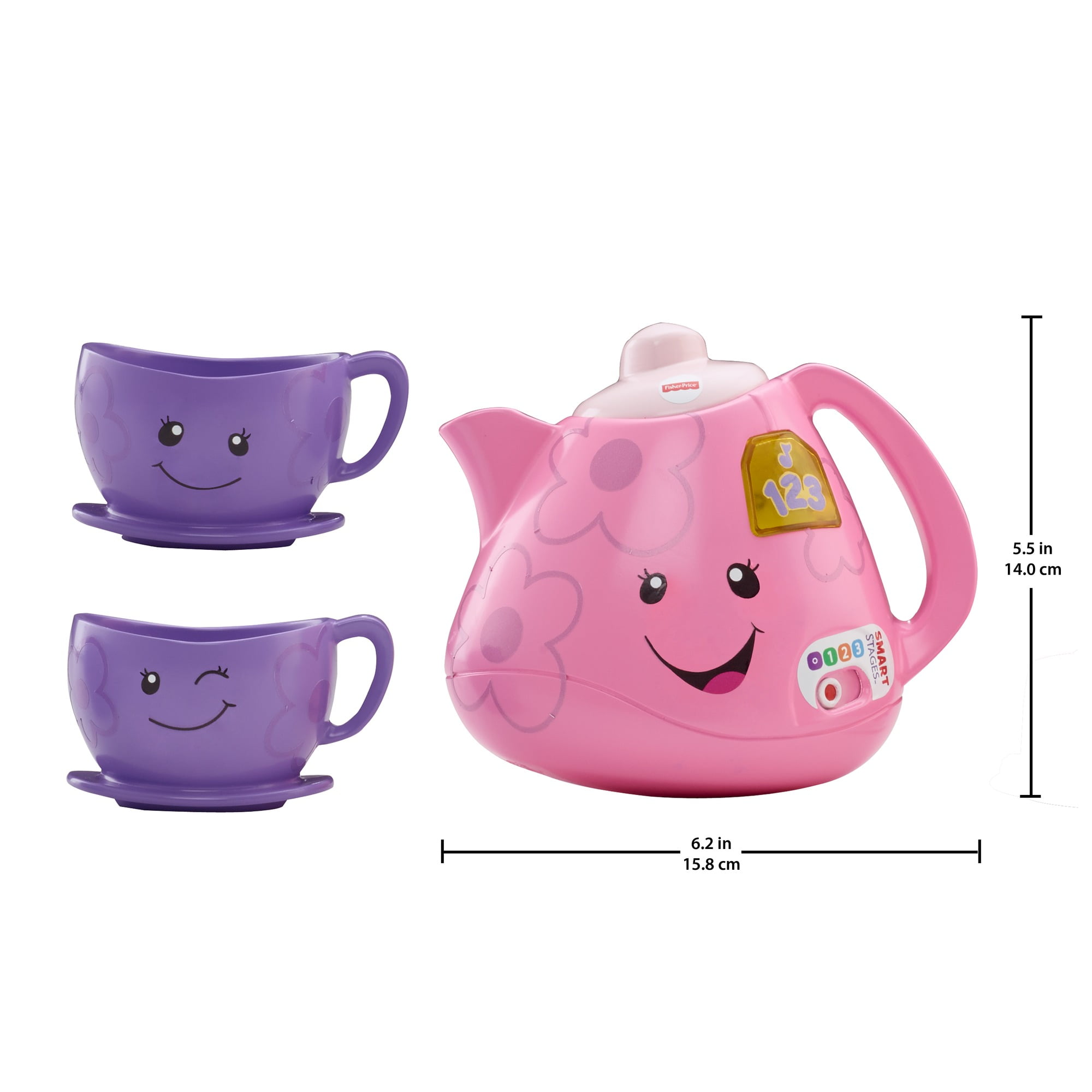 Two for tea, and tea for two! This Laugh & Learn tea set from Fisher-Price introduces the delights of pretend play while helping your baby learn about sharing, manners, colors, and more! Tilt the "magic" teapot and hear the musical learning fun pour out! Plus, with Smart Stages technology, you can choose the learning level that best fits your tea-party tot. Where development comes into play Academics: Playful songs, sounds, and phrases introduce sharing, counting, manners, colors, greetings, and more. Curiosity & Wonder: Tilting the teapot and pressing the teabag button to activate the songs and sounds introduces your baby to cause and effect. Creativity & Imagination: The familiar tea set design encourages early role play and imaginative fun as your little one enjoys a pretend tea party with you!Fisher-Price Laugh ‘n Learn Tea for Two:Age Range: 6 to 36 MonthsTilt the "magic" teapot or press the teabag button for fun songs & sounds!Learning content changes with baby’s age & stage with Smart Stages technologyFresh songs, phrases and sounds introduce sharing, counting, manners, colors, greetings, and more!Includes interactive teapot and 2 teacups
