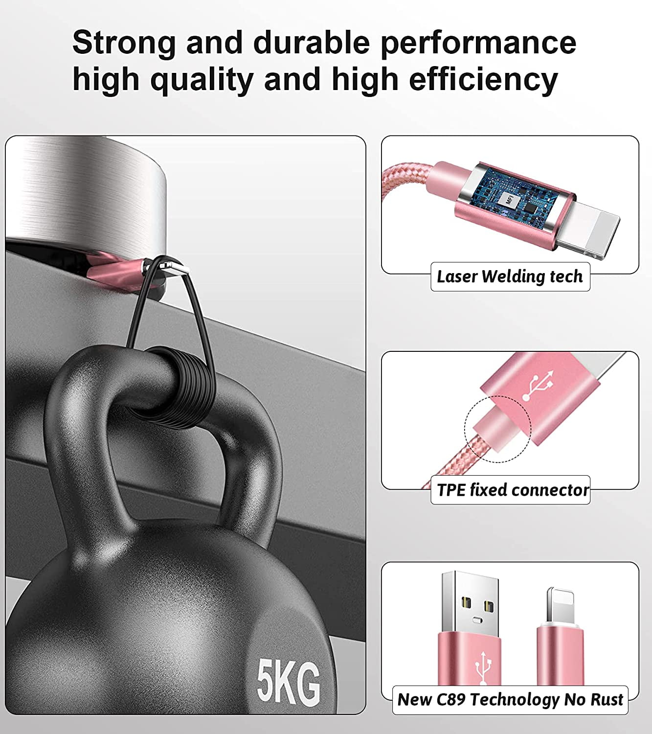 - Ultra Durable, Tangle Free, Beautiful Nylon Braided, Replacement Cables Compatible with iPhone